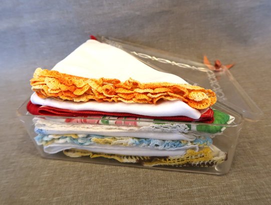 12 handkerchiefs included. some linen, some cotton. In good condition with some light staining