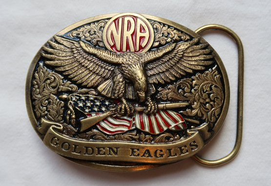 NRA Red Logo Golden Eagles Brass Belt Buckle