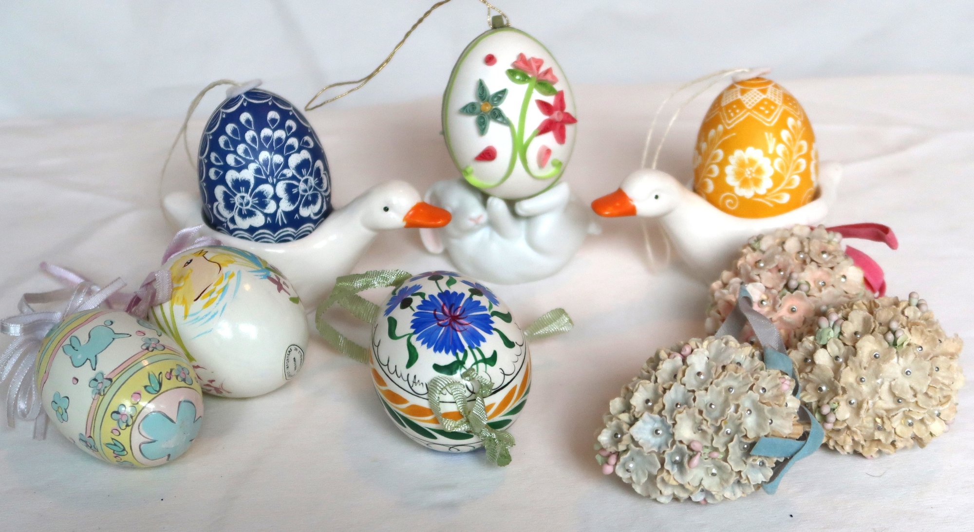 Set Of 9 Decorative Easter Eggs & Egg Cups