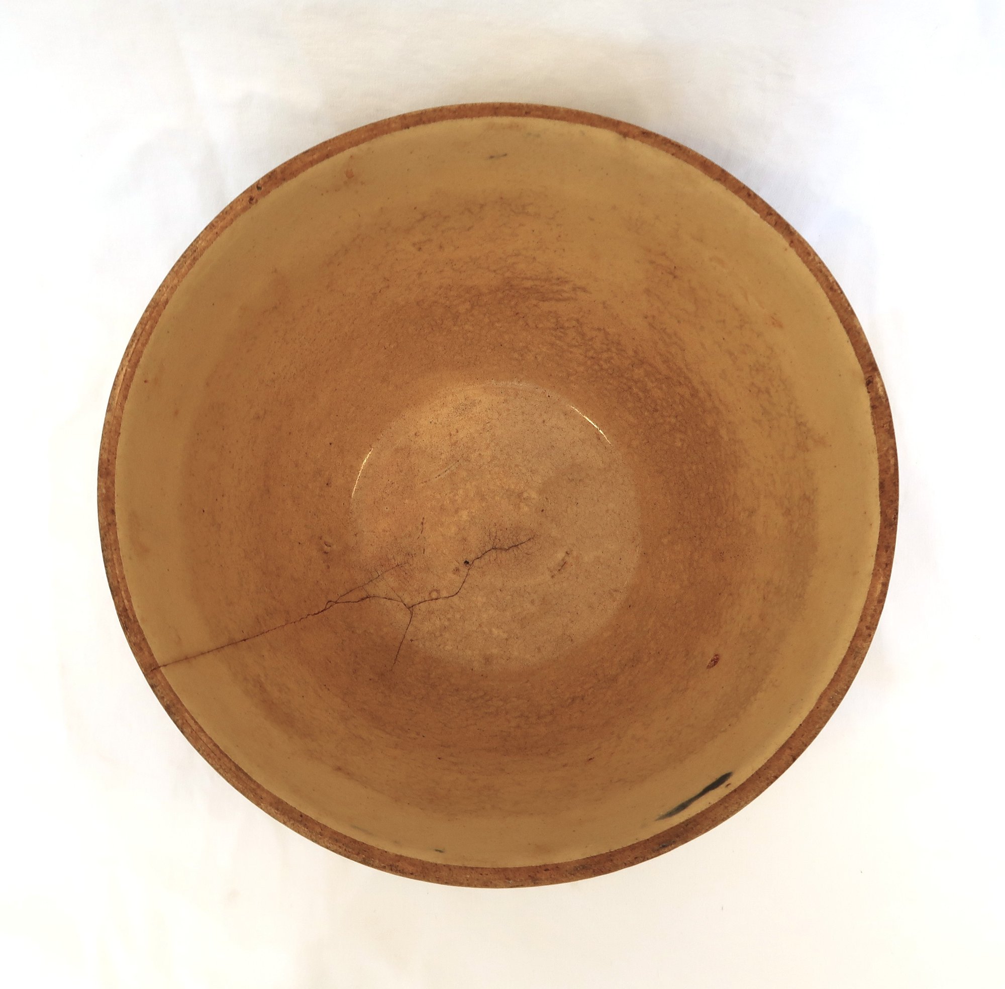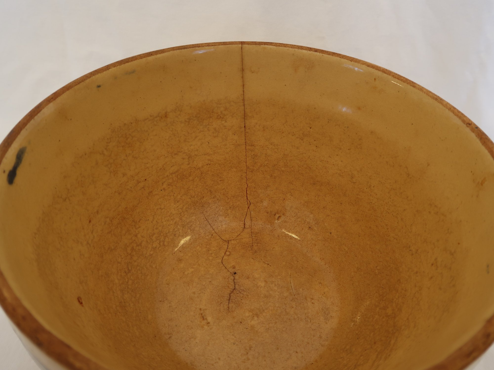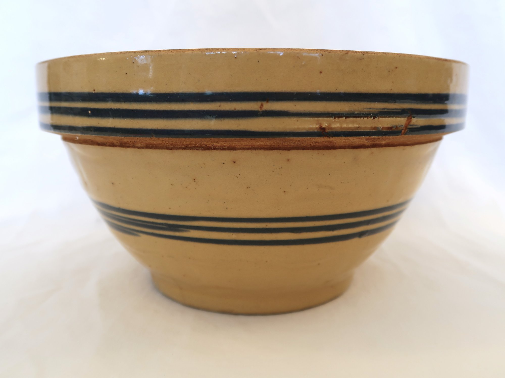 Vintage Yellow ware mixing bowl made of stoneware pottery