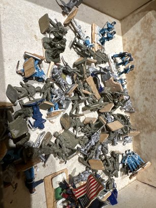 In an old cigar box variety of 1in cast figures Shipping available $15 paid separately with PayPal after sale