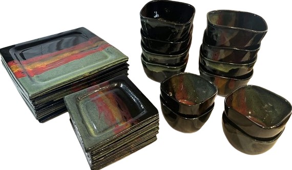 Always Azul Pottery: Lg Plates (8), Sm Plates (8), Lg Bowls (8), Sm Bowls (4, 1 With Chip)
