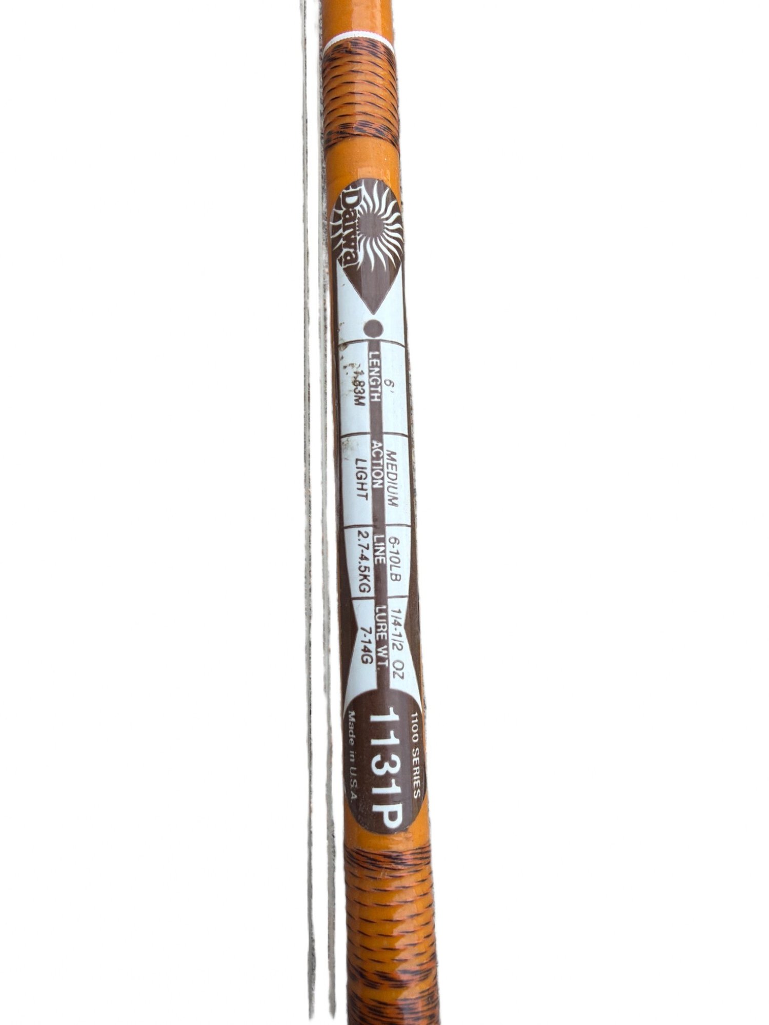 Eagle Claw Wright & McGill fishing rod, model 1131P, constructed with a cork handle. It features a 6'6" length as indicated on the rod, suitable for 4-8 lb lines and lures weighing 1/8-1/2 oz. The rod is marked as light action.