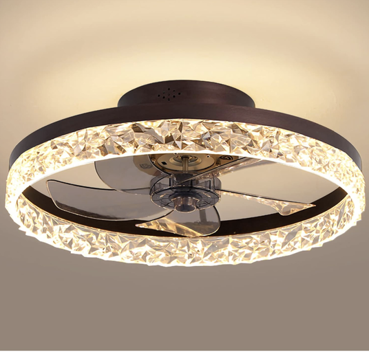 PSHRFANST 19.7" Ceiling Fan with Lights, Dimmable LED 6 Speeds Reversible Blades Timing with Remote Control, Semi Flush Mount Low Profile Fan, Brown