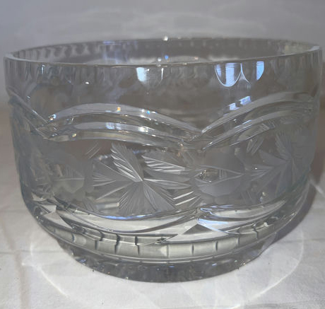 Heavy Cut Crystal Glass Bowl - 7 7/8