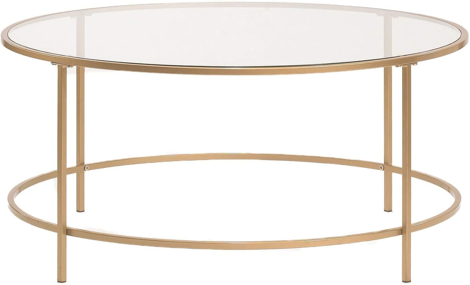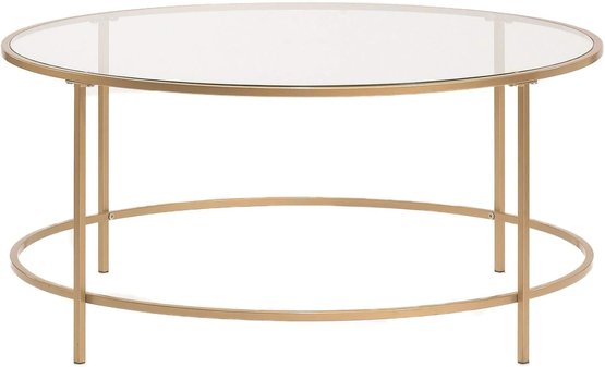 (Like NEW)Int Lux Coffee Table Round, Glass / Gold Finish