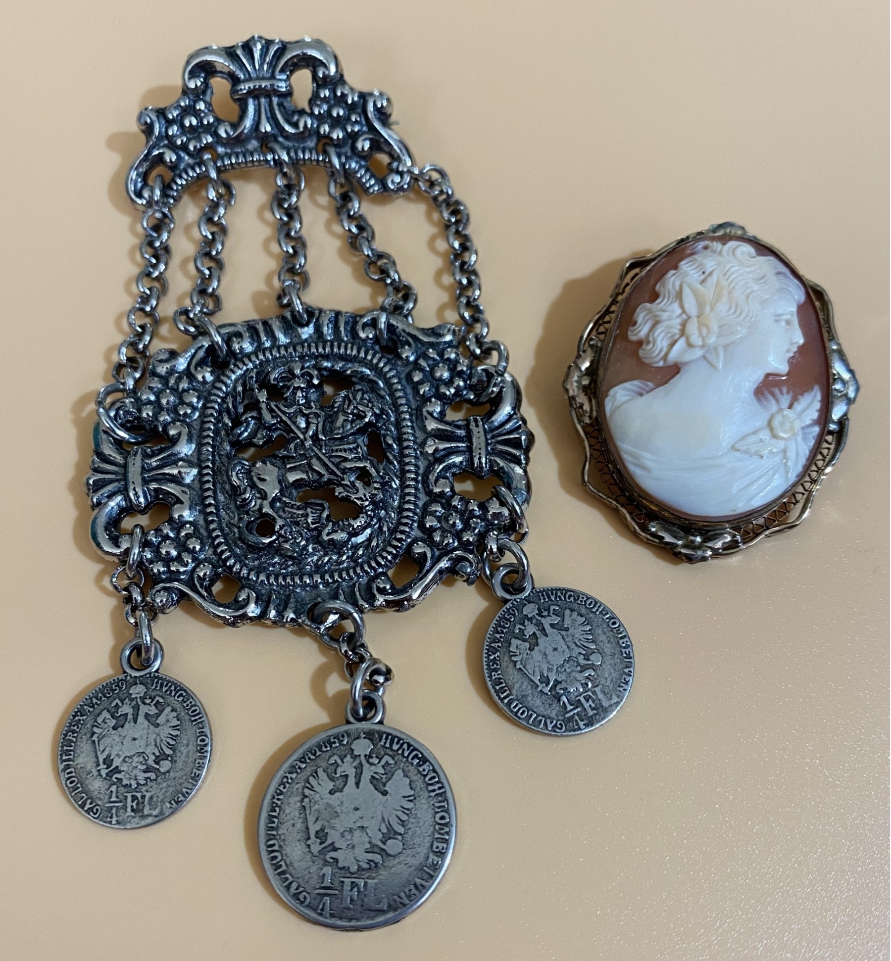 Gorgeous Vintage Cameo Pin, Plus Additional Pin / Brooch