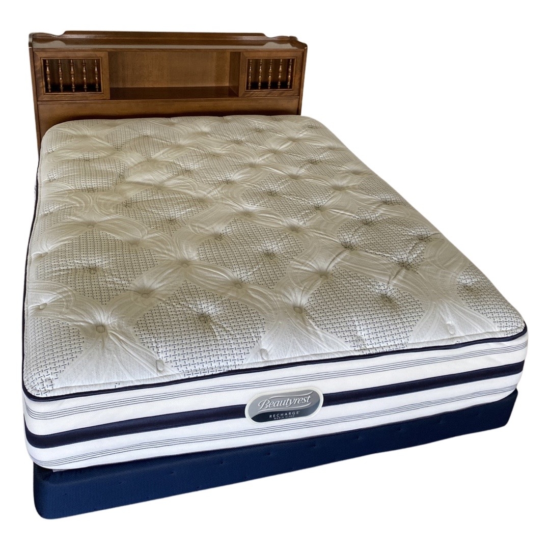 Queen Beautyrest Recharge Mattress And Box Spring In Great Condition, Plus Wooden Headboard With Storage