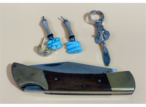 Small Pocket Knife Plus Various Mismatched Jewelry Pieces