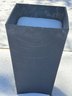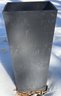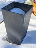 Tall square planter featuring a clean-lined, modern design in black composite material. The exterior shows a matte, slightly textured finish with visible signs of use and wear. Suitable for indoor or outdoor use. Dimensions confirmed using the provided tape measure: 27 inches in height and 13.5 inches in width.
