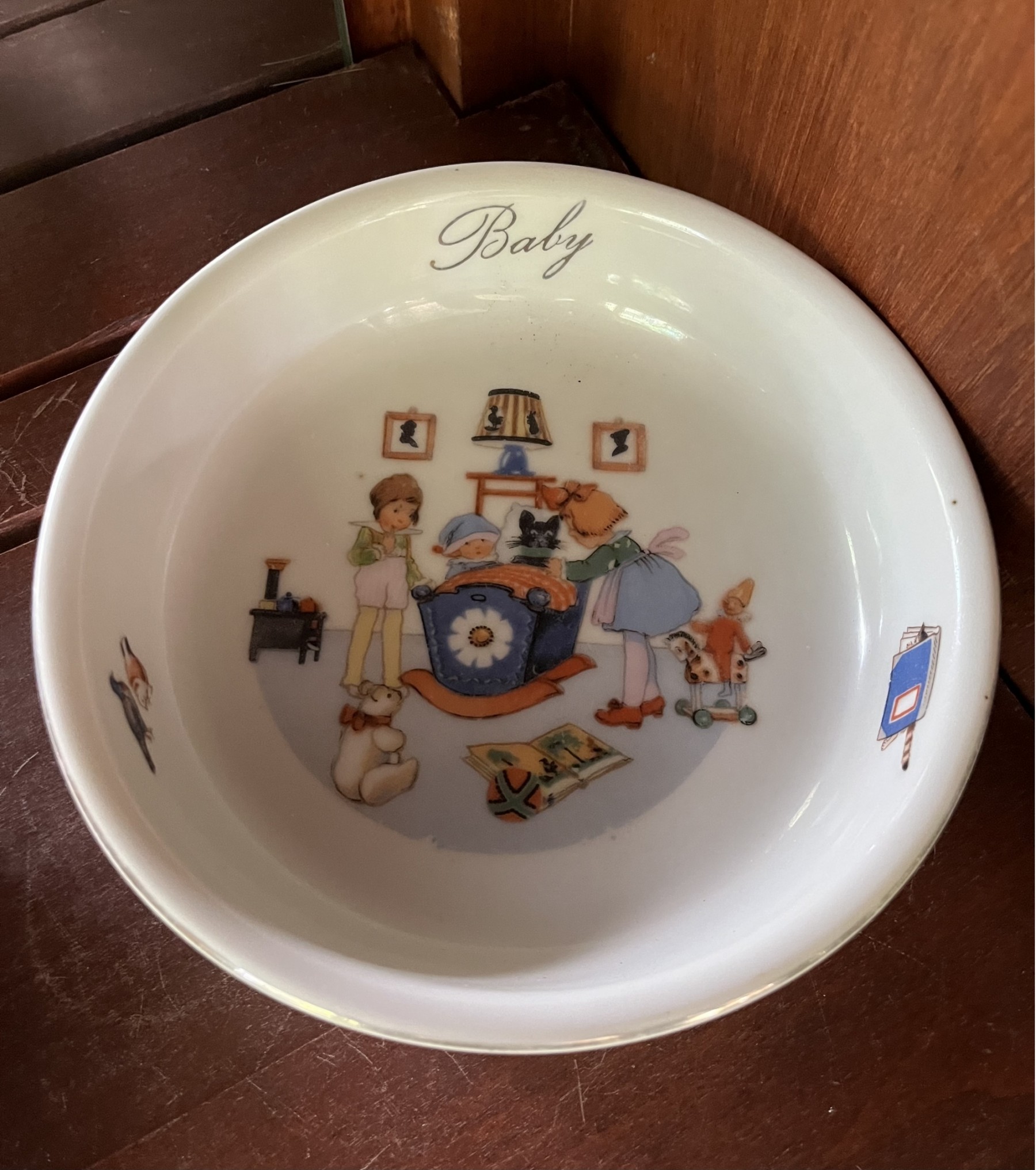 Vintage Baby Plate With Painted Children’s Scene 1920’s