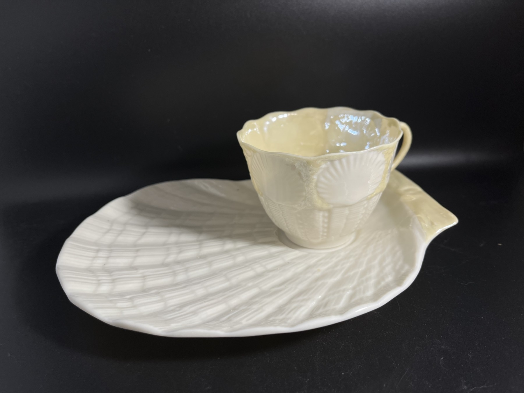 Vintage Belleek Irish Shell Themed Teacup And Saucer