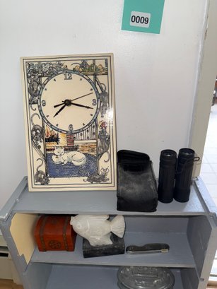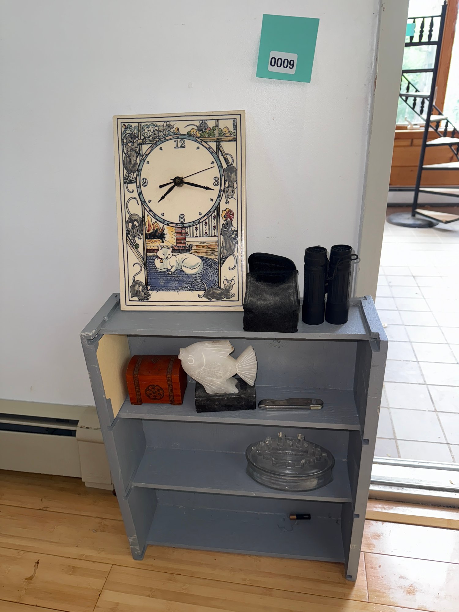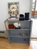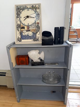 009 - Small Blue Bookshelf With Assorted Decor Items