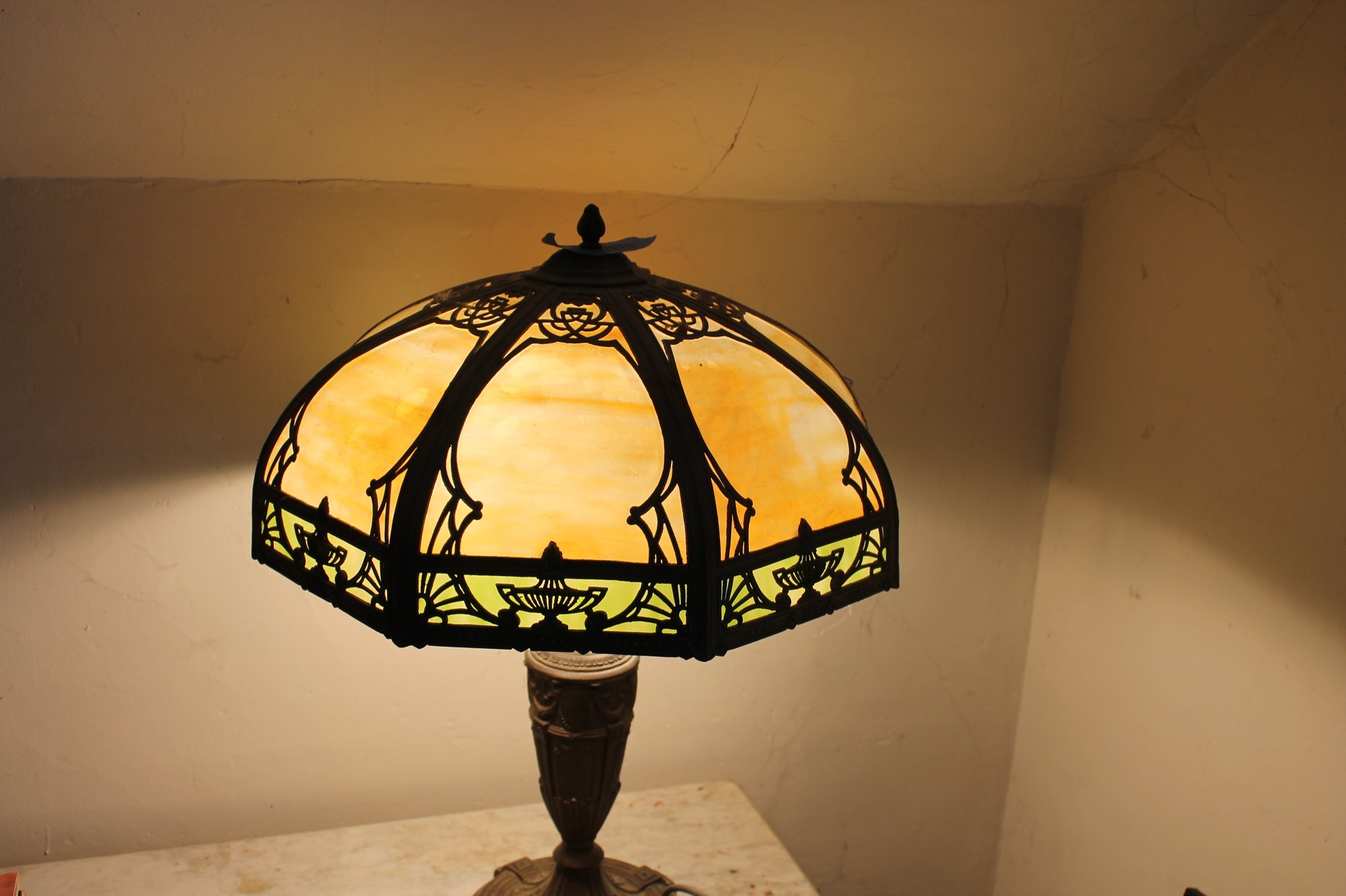 7 ~ ANTIQUE LEAD GLASS LAMP