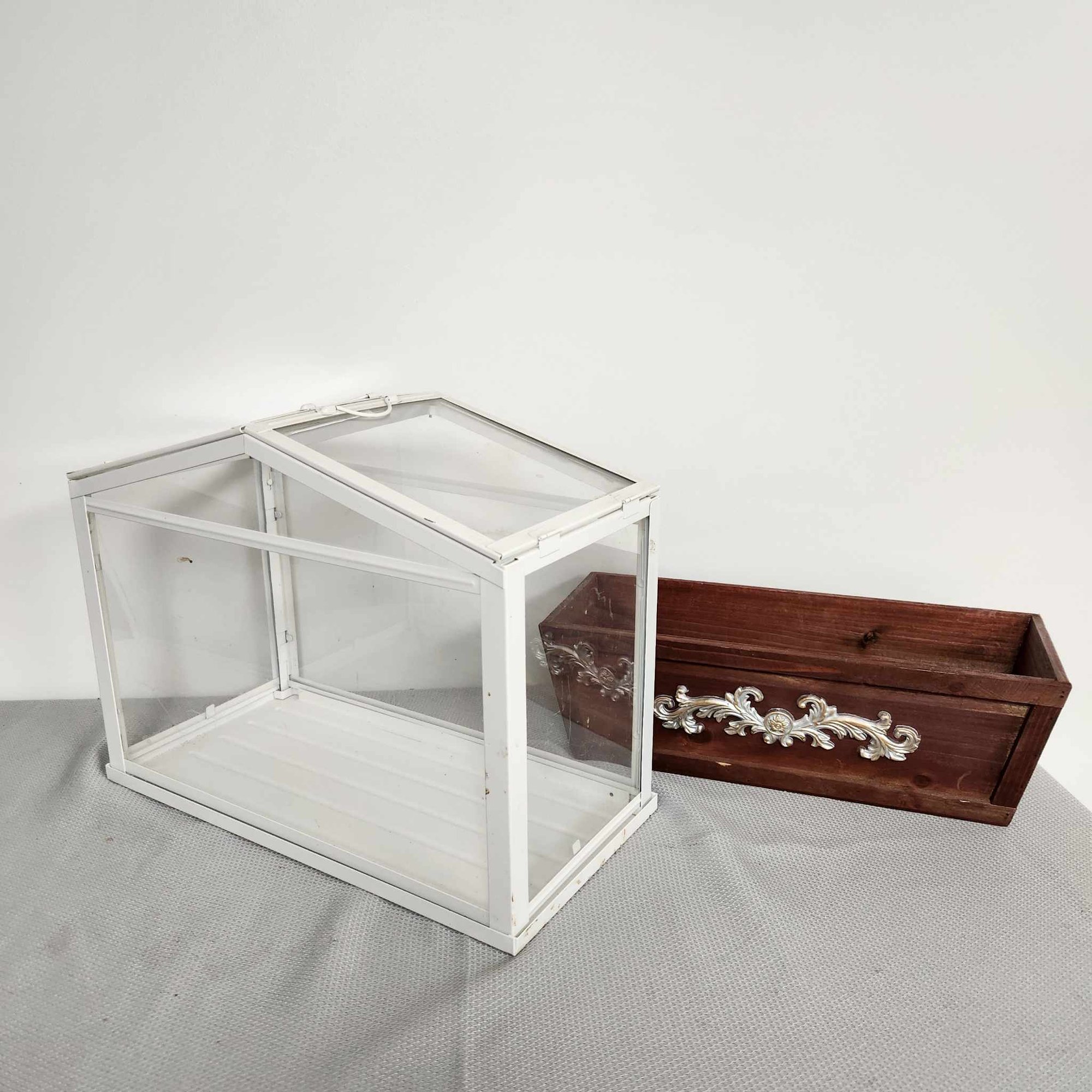 White Planter Box 18"x 13, Wooden Box 17"x 16"