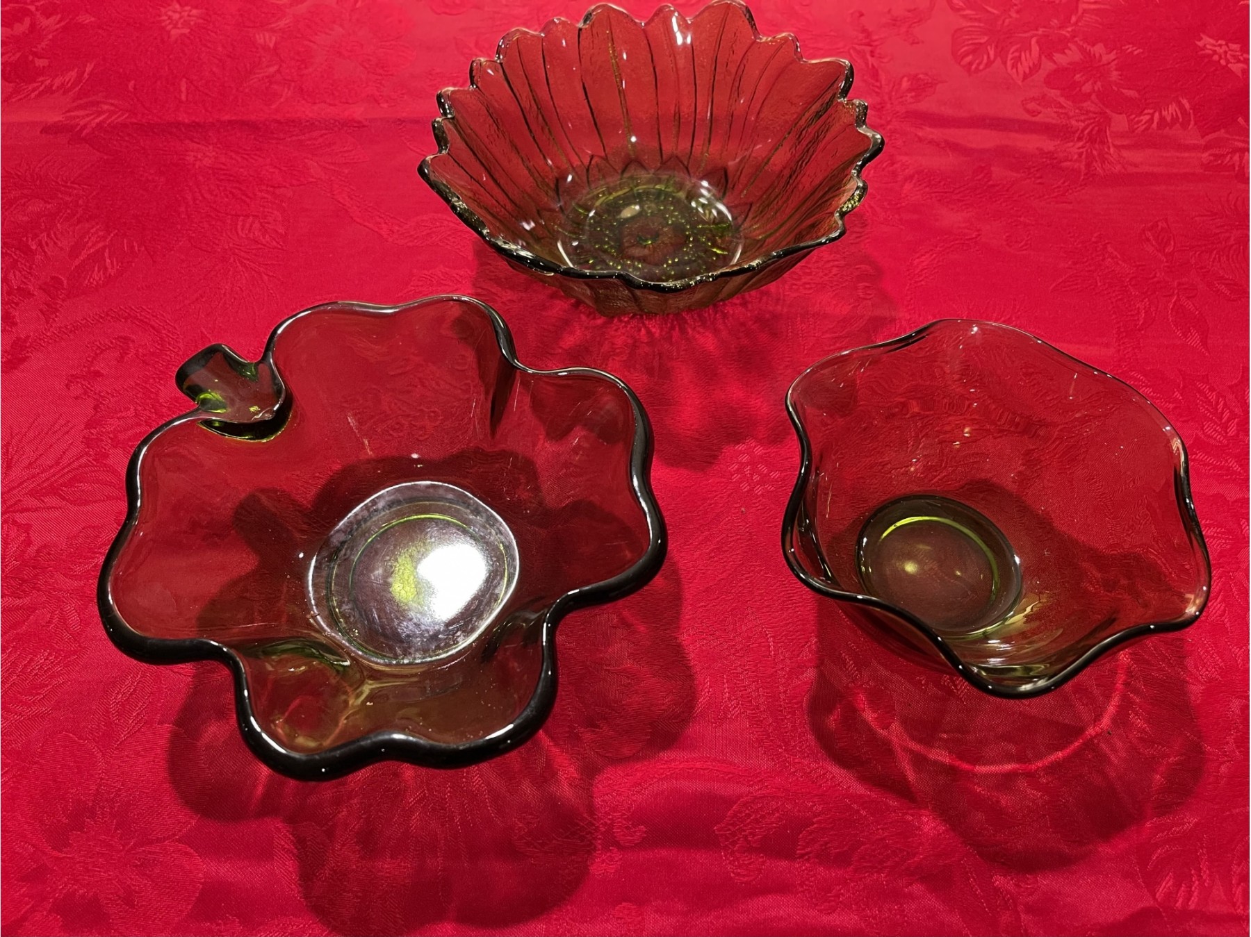 Green depression glass sunflower
