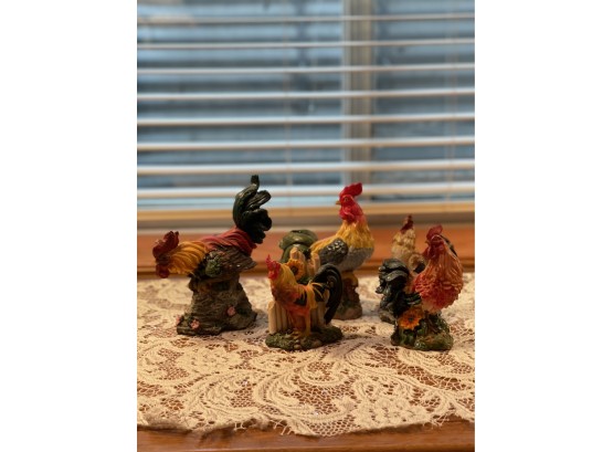 Small Rooster Figurines Set