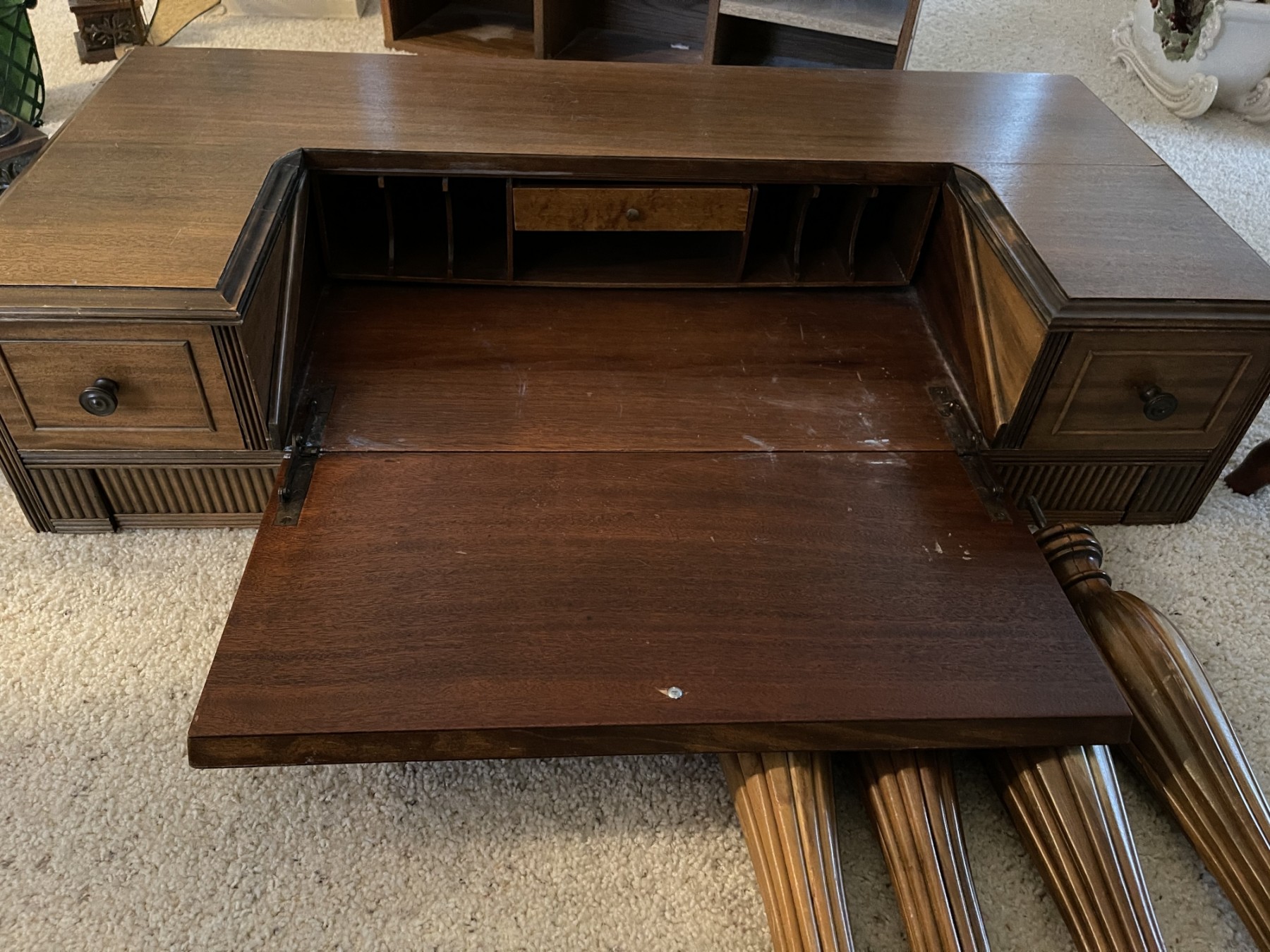 Neat vintage desk. Screws stripped in the threading, needs a little work to get standing.
