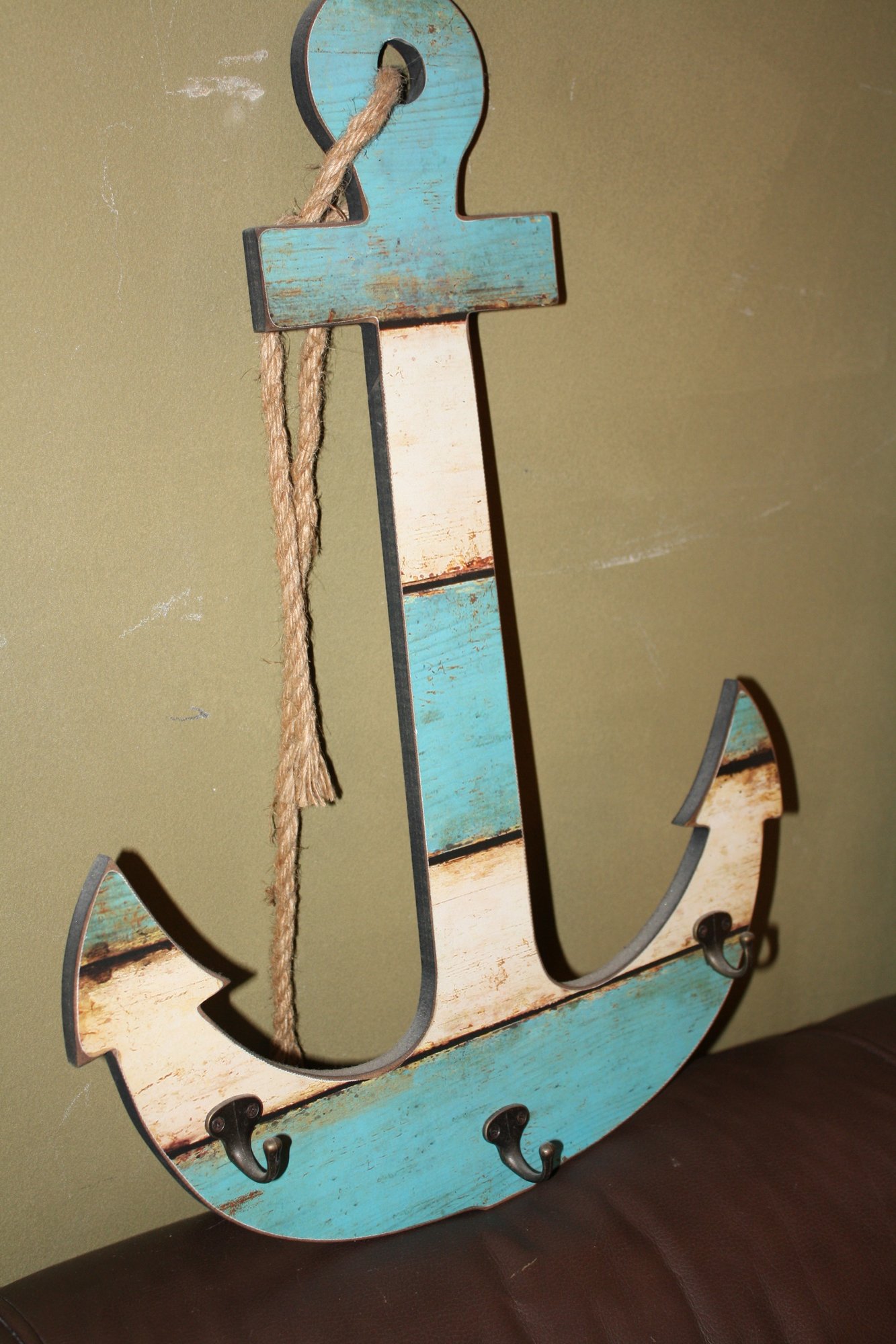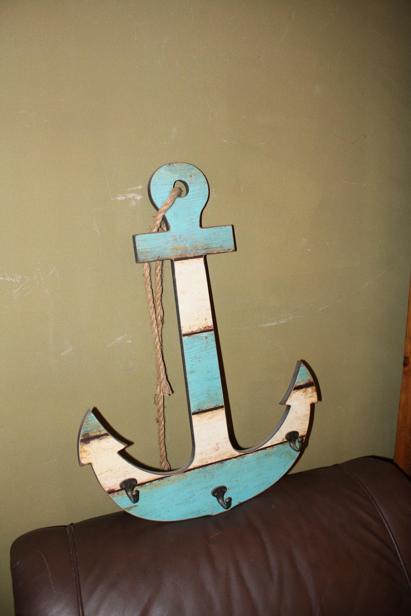 Decorative blue wooden anchor wall hanging by Nagina International, featuring a nautical-inspired design with rustic rope accents and built-in hooks. Ideal for coastal, beach, or farmhouse décor, perfect for hanging keys, small items, or as a decorative wall accent. Crafted from durable wood with a charming rustic finish.