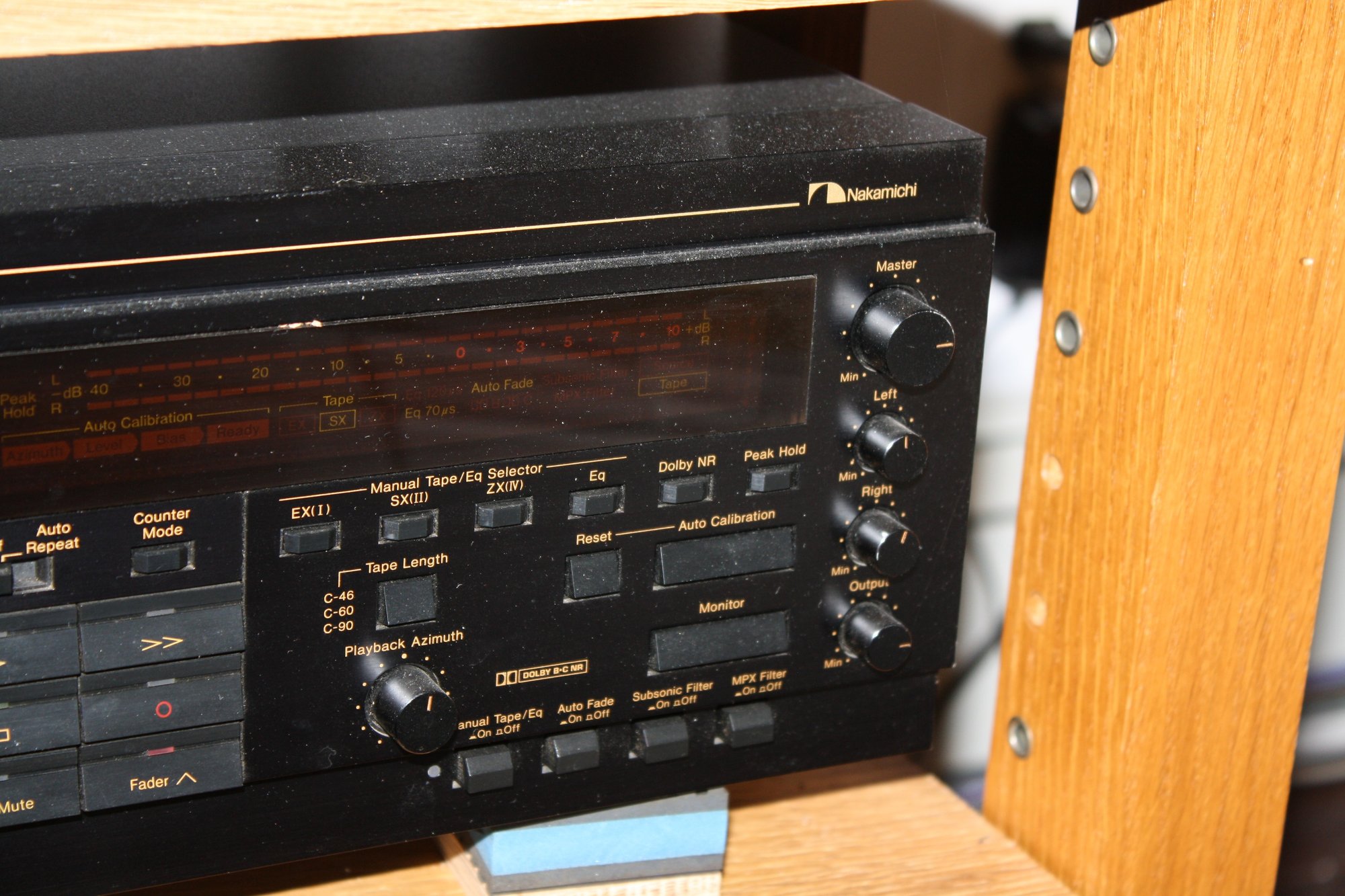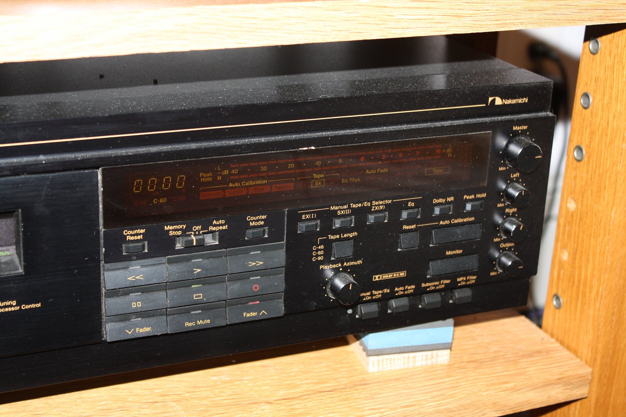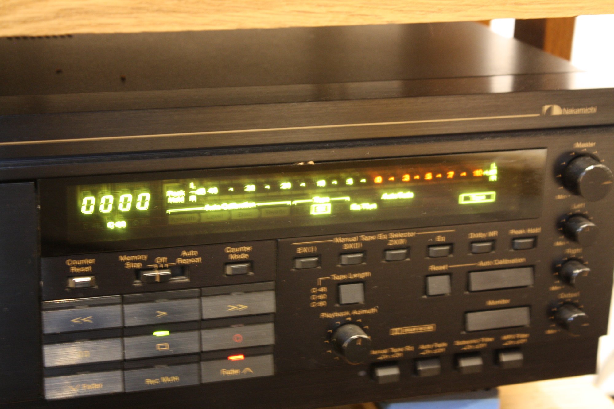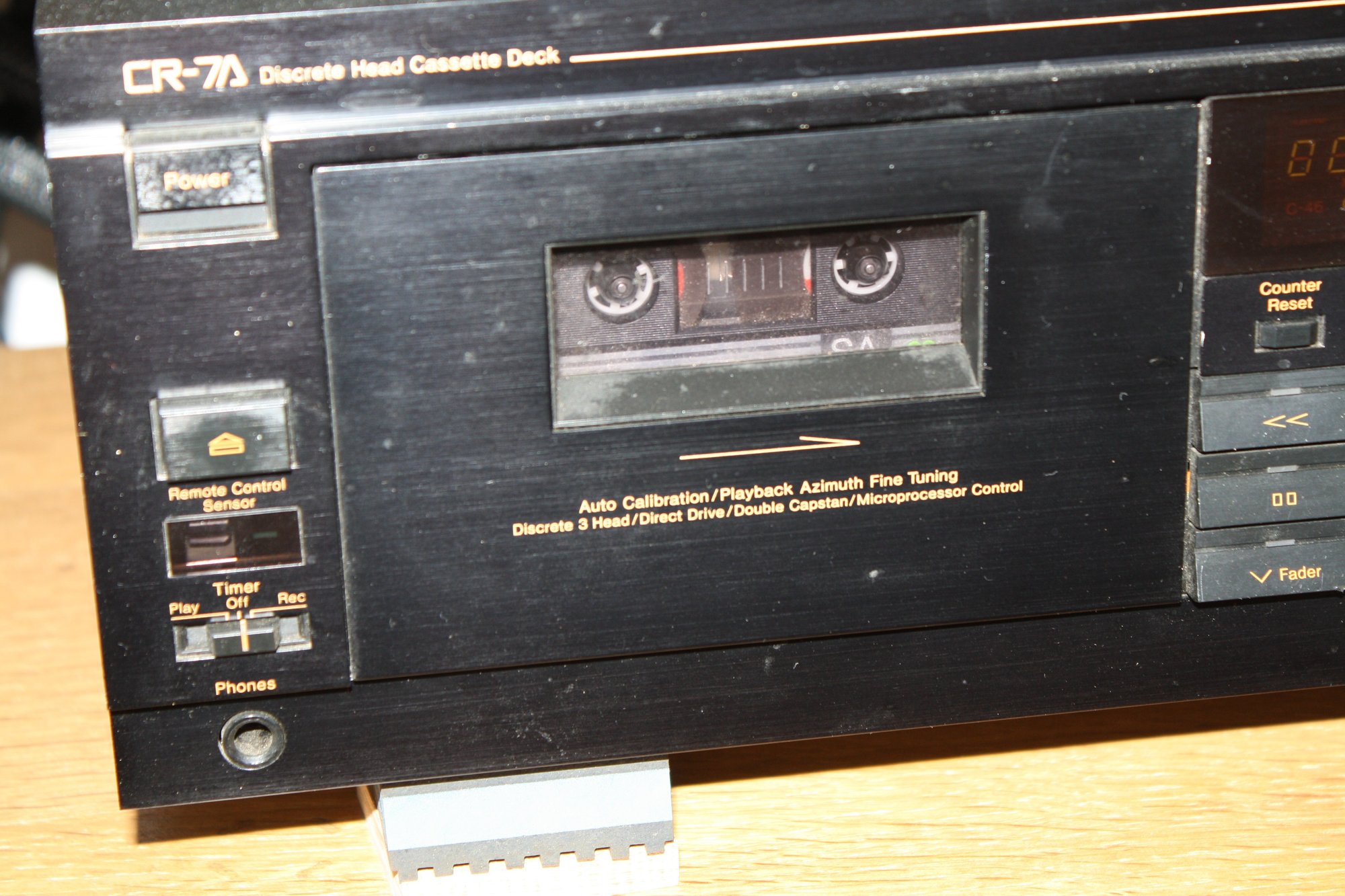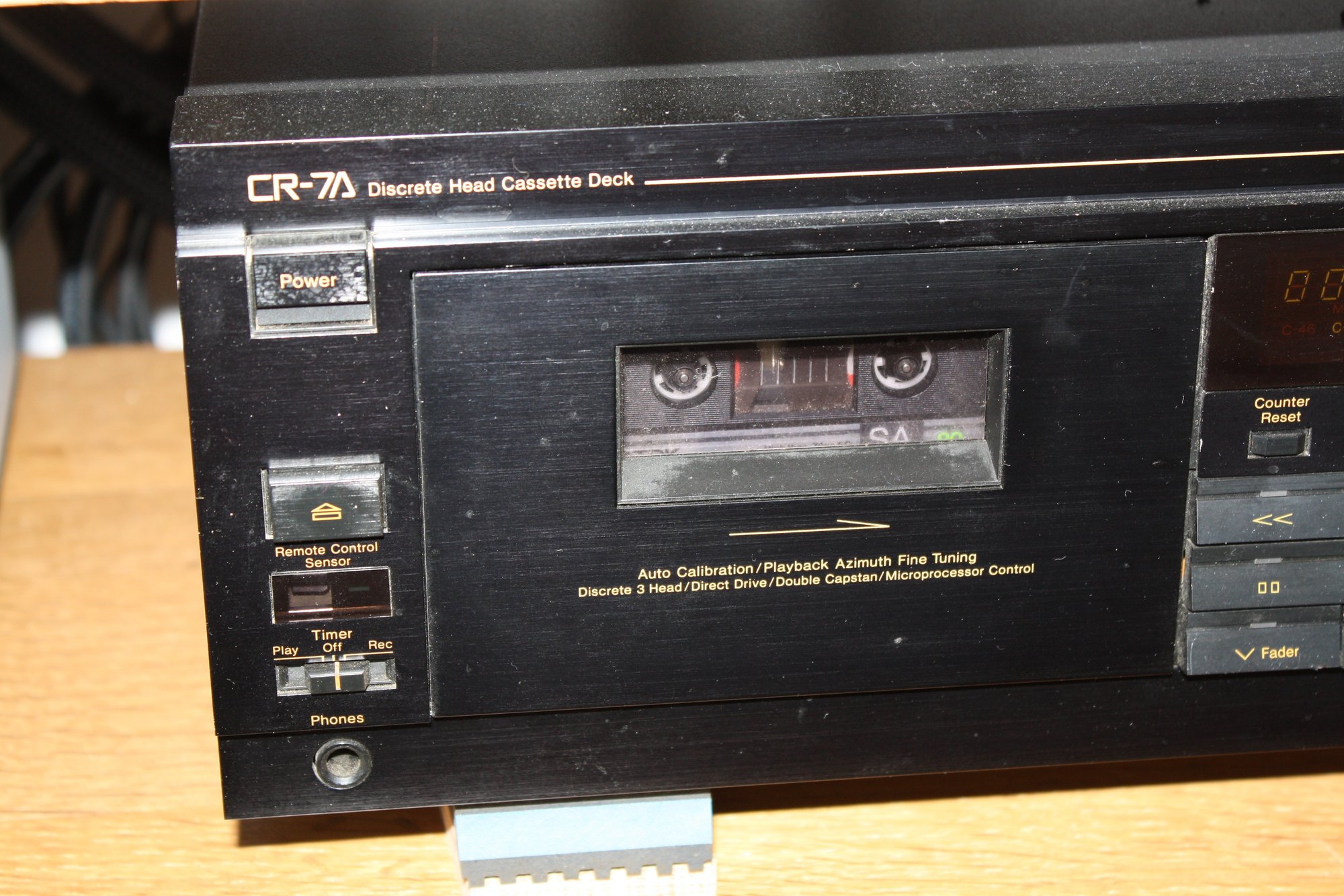 Nakamichi CR-7A high-fidelity 3-head direct-drive stereo cassette deck featuring automatic azimuth fine-tuning, manual record level and bias calibration, and Dolby B/C noise reduction for precision analog tape playback and recording.