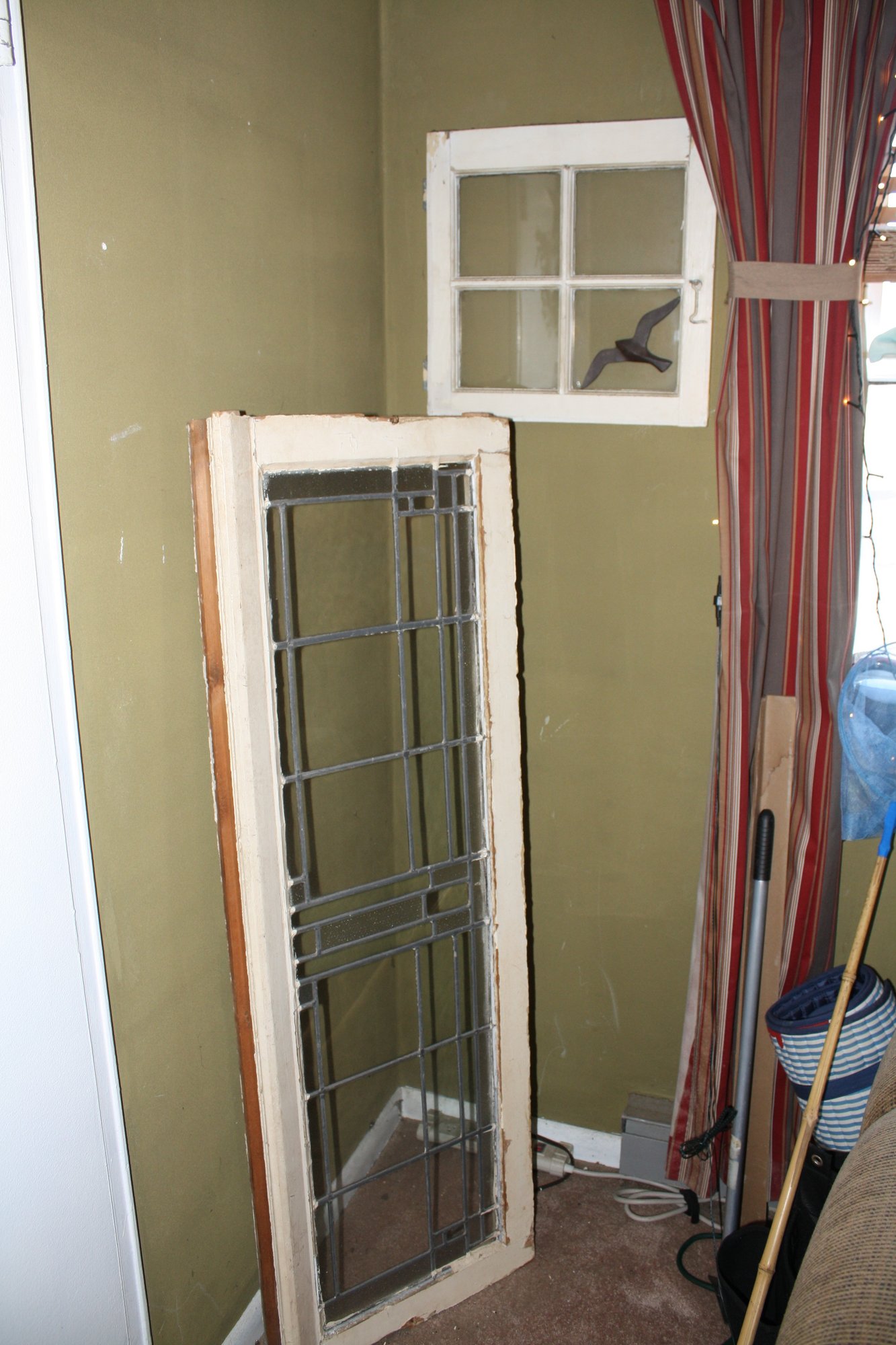 Antique Arts & Crafts / Mission-Style Glass Window Or Cabinet Door