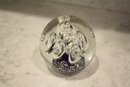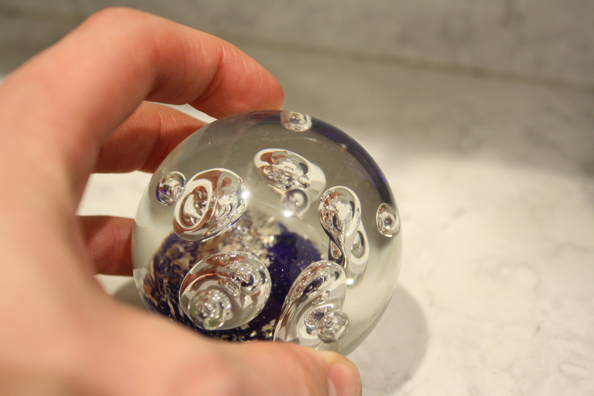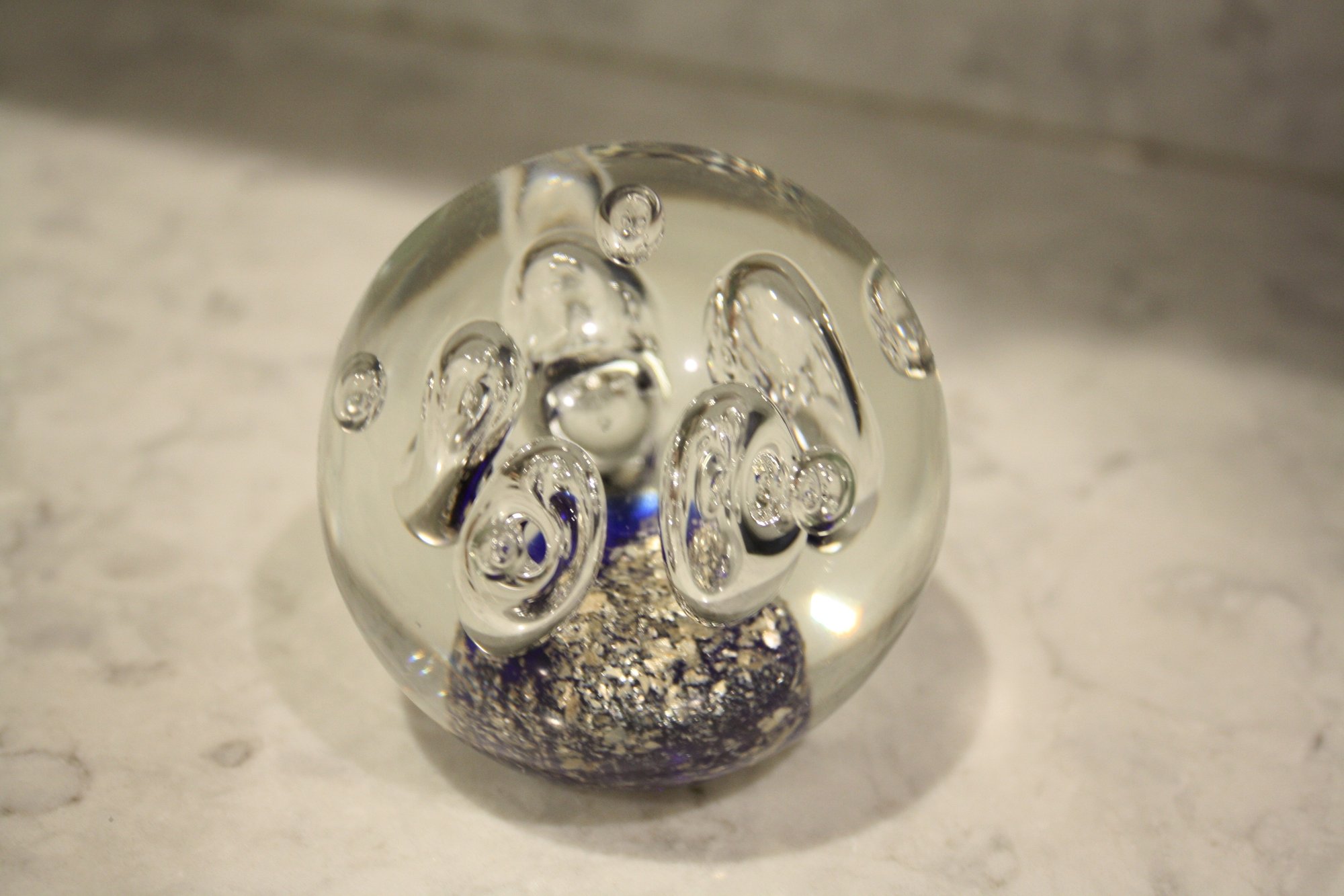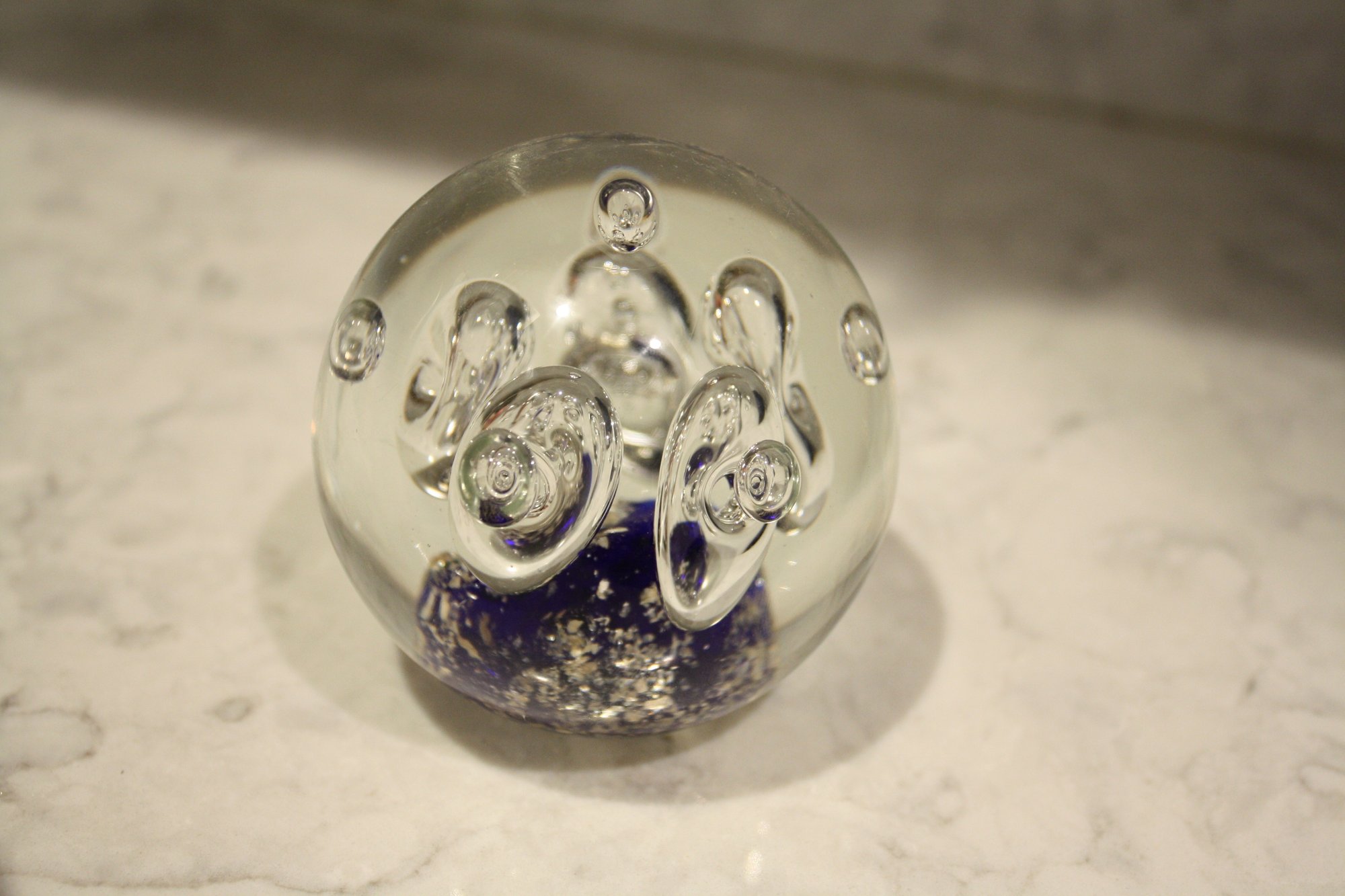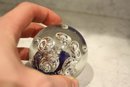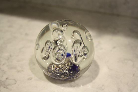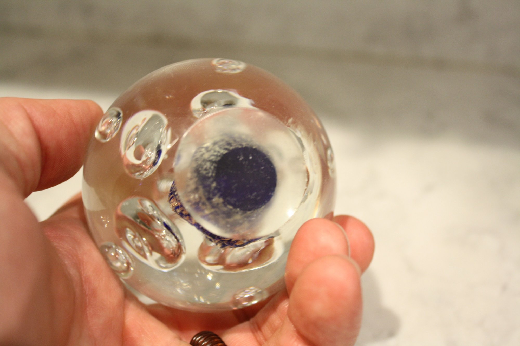 Art Glass Paperweight With Cobalt Blue Core And Bullicante Bubbles