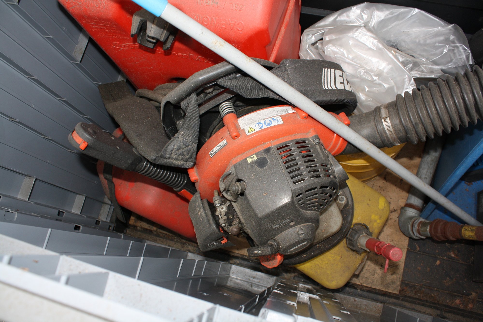 Gas-powered leaf blower designed for clearing leaves, grass clippings, and light debris from lawns, driveways, and walkways. Typically equipped with a small 2-stroke gasoline engine for high air output and mobility. Depending on configuration, may be handheld or backpack-style for improved comfort during extended use. Some models support blower and vacuum/shredder functions for added versatility. Performance is commonly measured in air speed (MPH) and air volume (CFM).