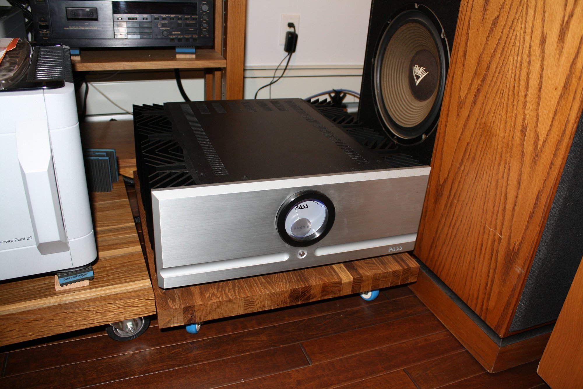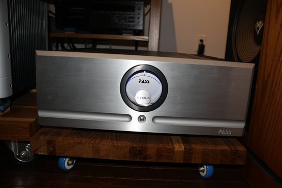 Pass Labs X260.8 monoblock power amplifier rated at 260 watts into 8 ohms and 520 watts into 4 ohms, utilizing a Class AB design that operates in pure Class A up to 34 watts. Engineered for high current output and exceptional performance, it features a large analog bias meter and heavy-duty construction. Renowned for its low noise, wide bandwidth, and detailed sound reproduction, making it ideal for high-end audiophile systems.