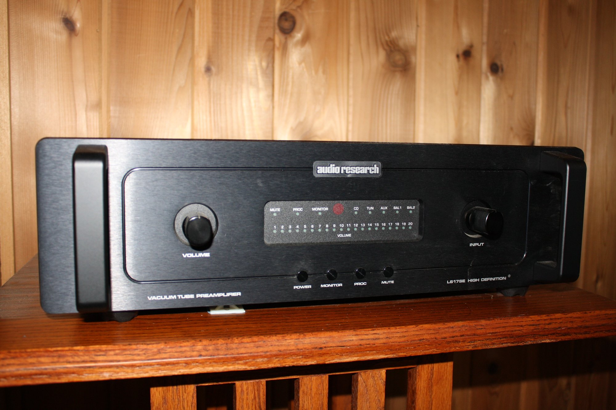 Audio Research LS17SE vacuum tube preamplifier featuring a hybrid JFET/tube circuit design with 6H30P output tubes, rotary volume control with 104-step precision and 20 LED indicators, and both balanced and single-ended inputs and outputs, engineered for high-definition, low-distortion audio reproduction