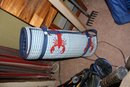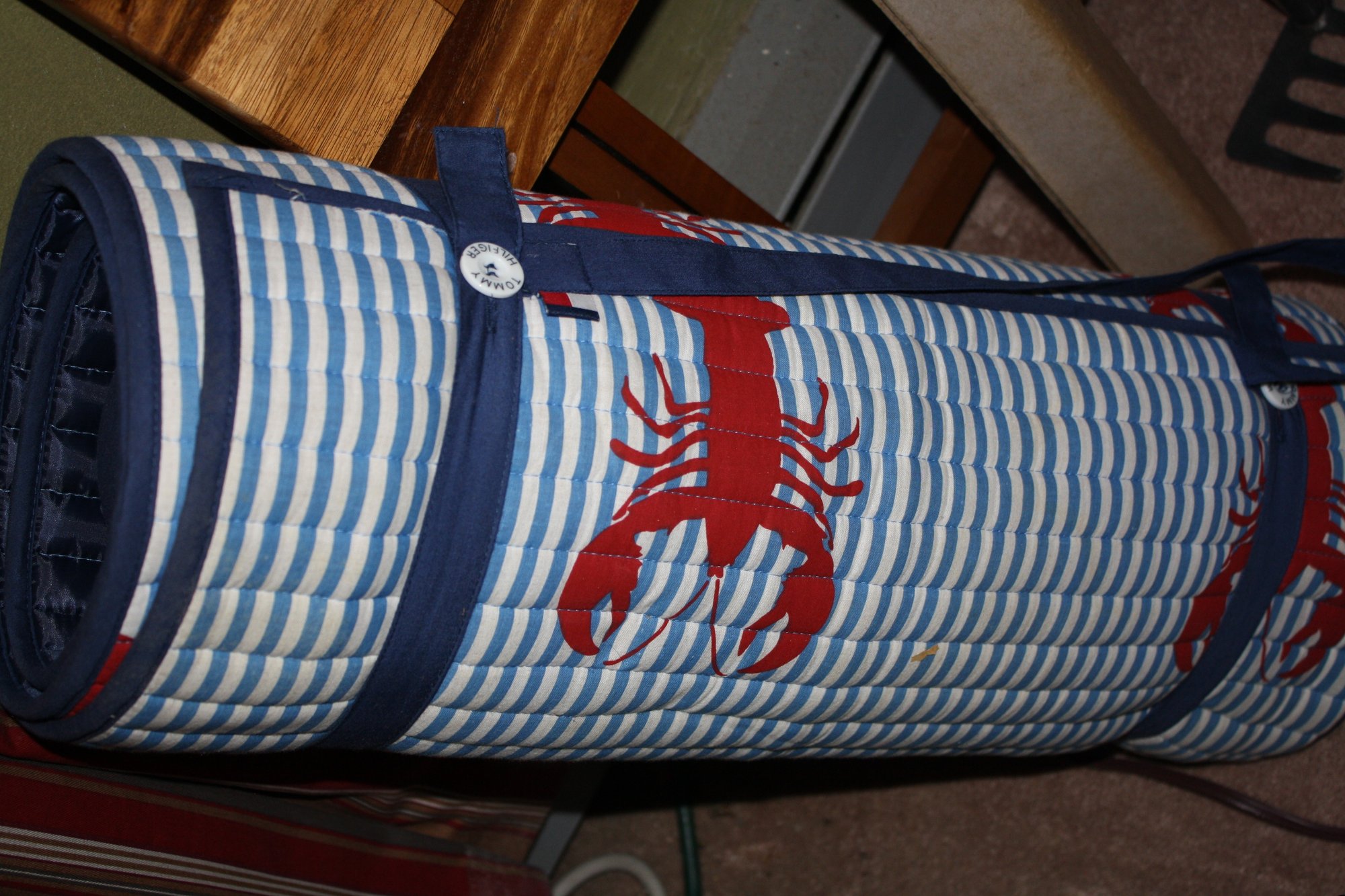 Nautical Blue & White Striped Beach Mat With Red Lobster Print