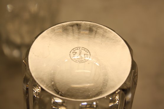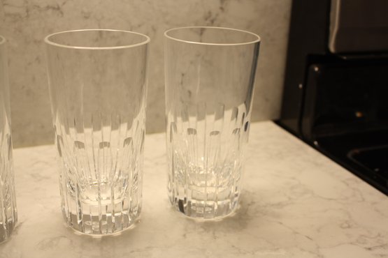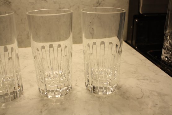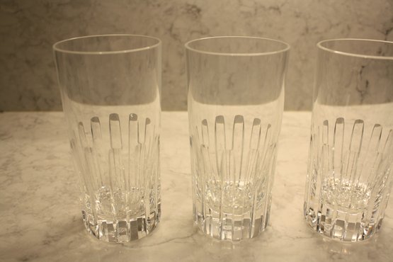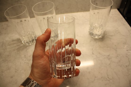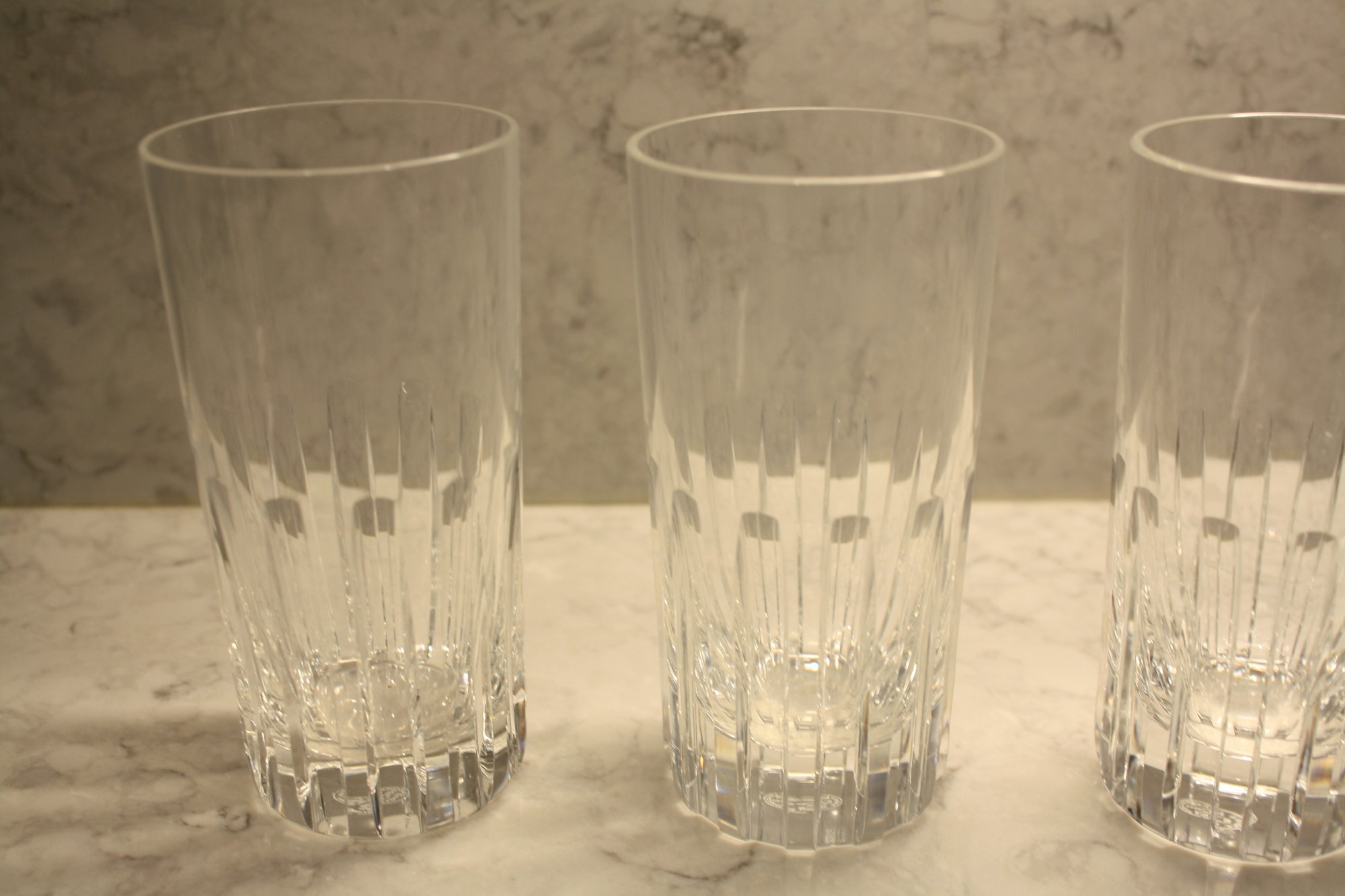 Baccarat rotary Crystal Highball set of 4 minor chips and scratches. no chips on rim approximately 5.8 inches in height, designed for elegant serving of mixed drinks and beverages
