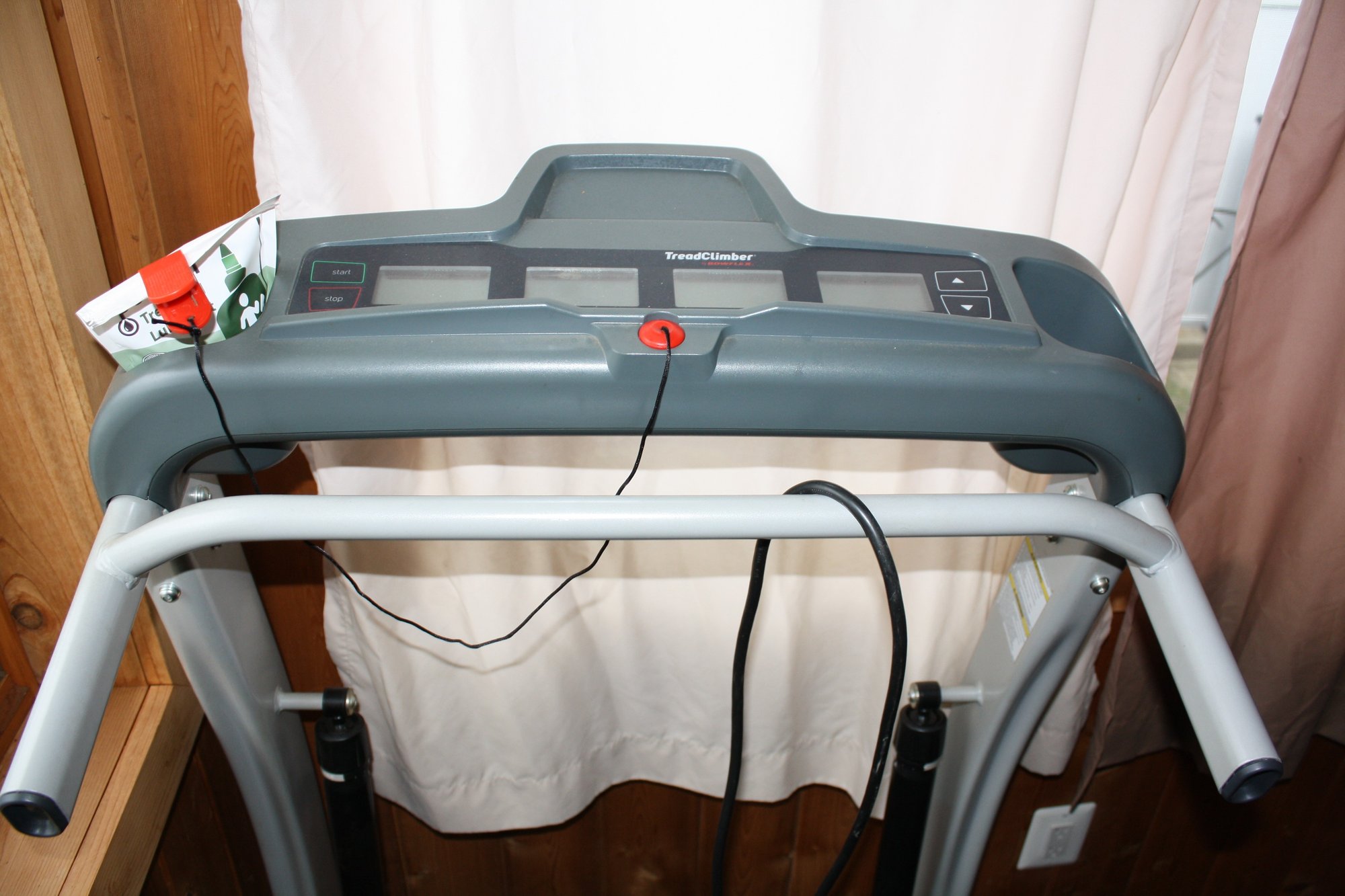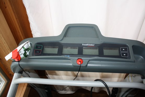 Bowflex TC10 TreadClimber cardio fitness machine combining the motion of a treadmill, stair climber, and elliptical in one compact design. Reaches speeds up to 4.0 mph and is built for low-impact, high-efficiency home workouts. Features four separate LCD display screens that track speed, distance, time, and calories burned for real-time workout monitoring. Designed with a sturdy non-folding frame and supports users up to 300 lbs for at-home cardio training.