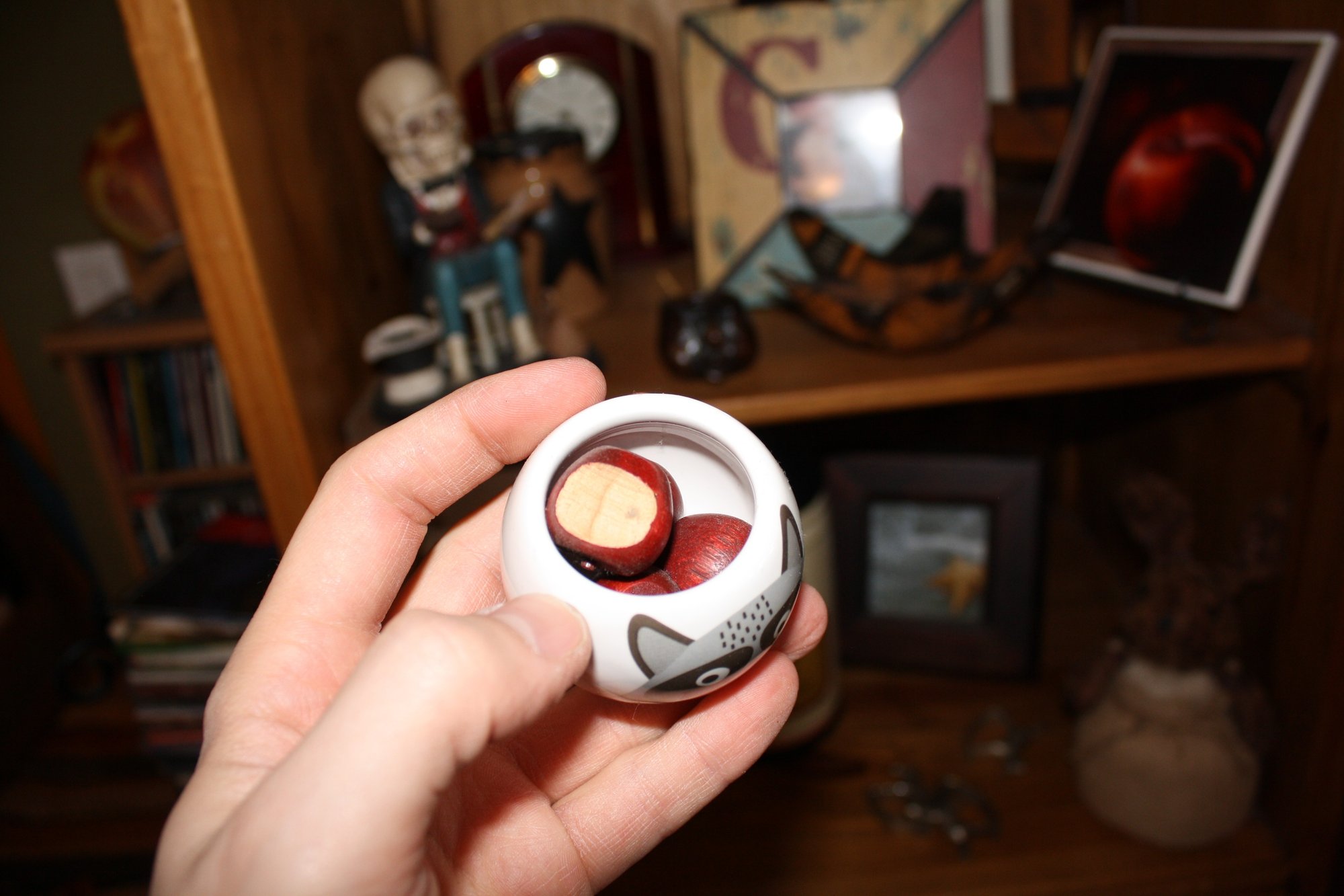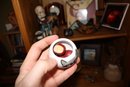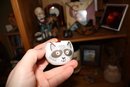 Small white ceramic pot featuring a cartoon raccoon face, part of the “Remy Raccoon” Buzzy Ceramic Characters collection. Can be used as a grass grow kit pot, raccoon-themed egg cup, or small appetizer bowl. Designed with a whimsical character motif, perfect for decorative kitchen use, tabletop displays, or growing small plants or grass indoors.