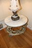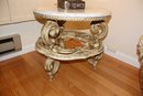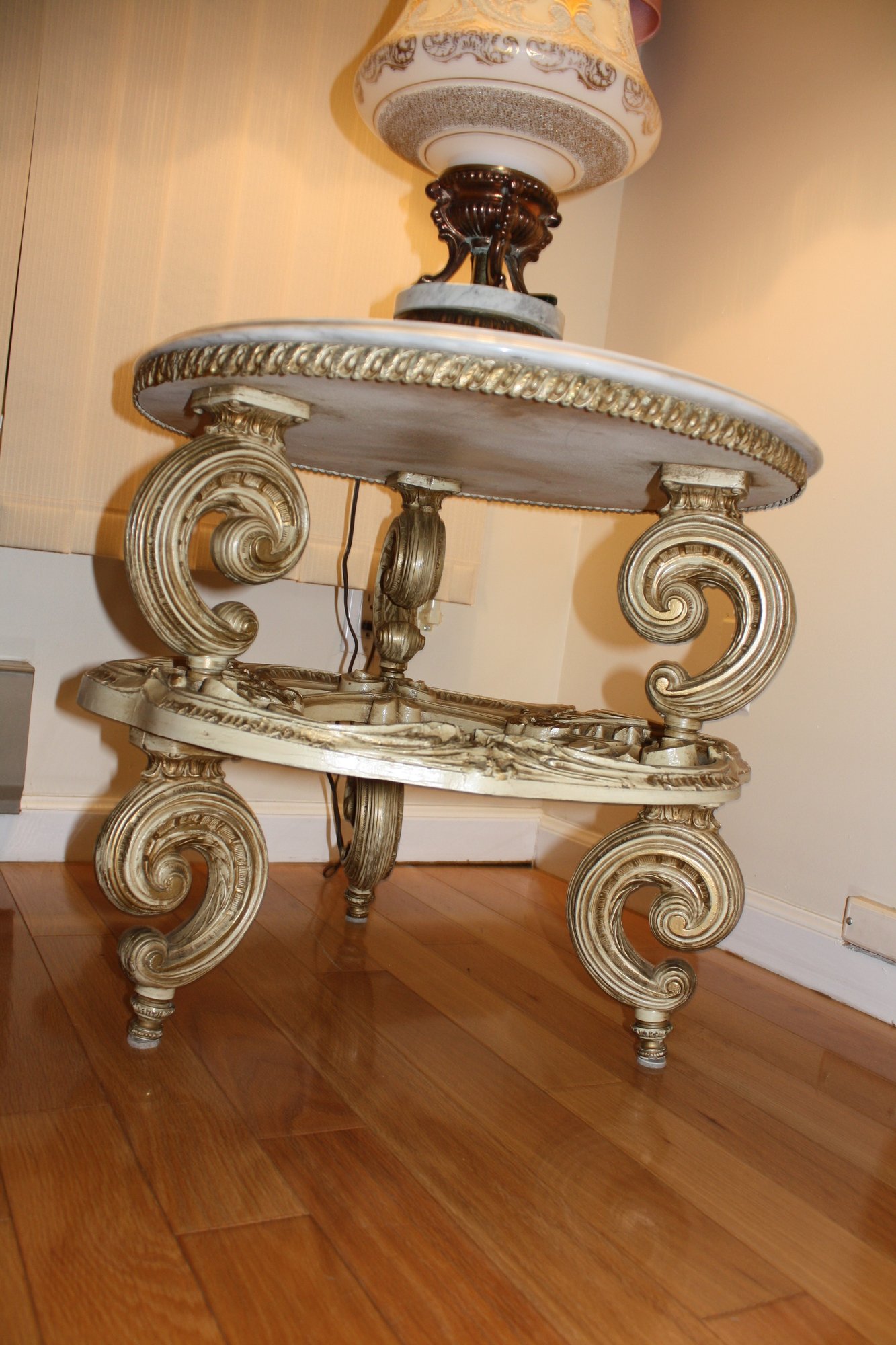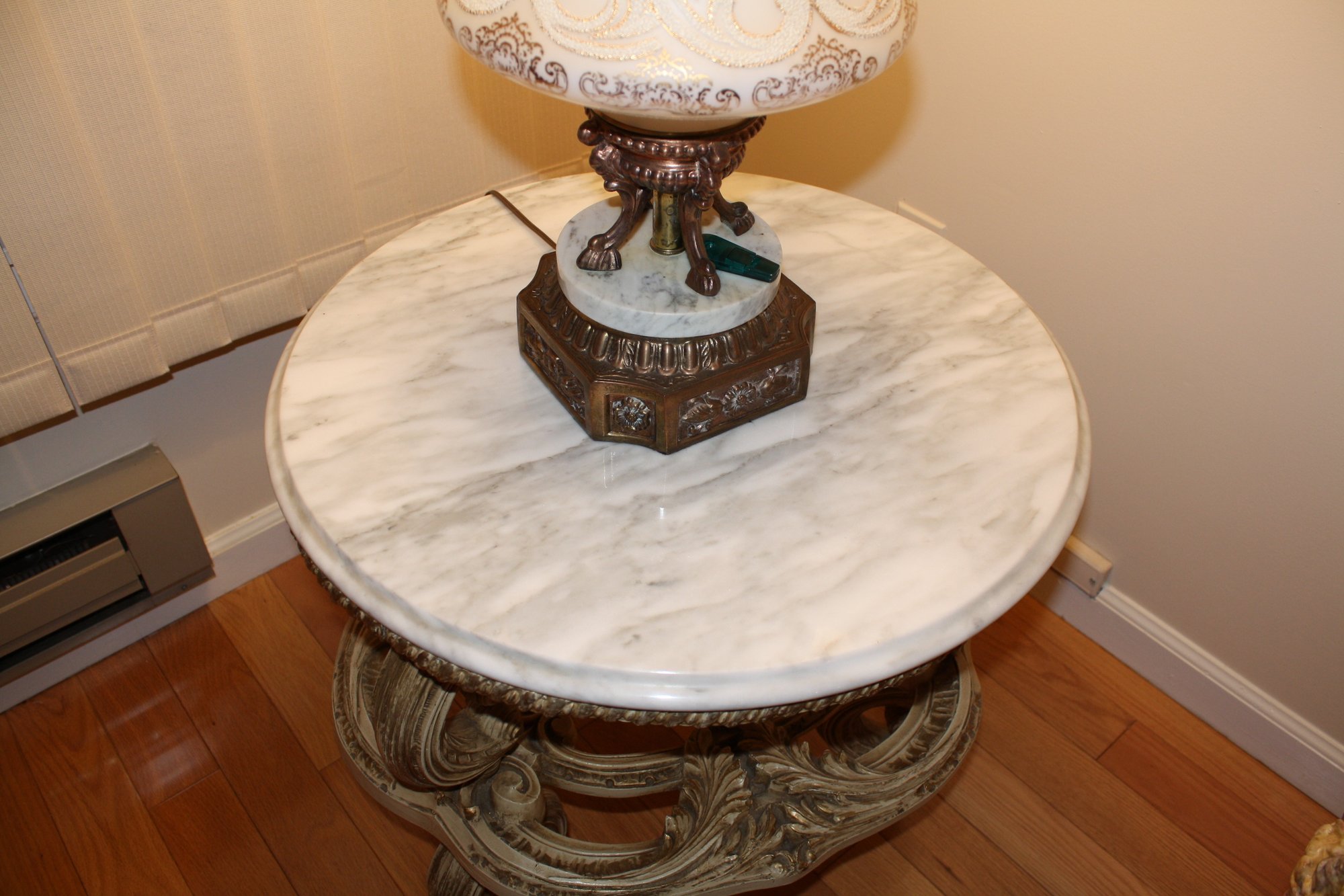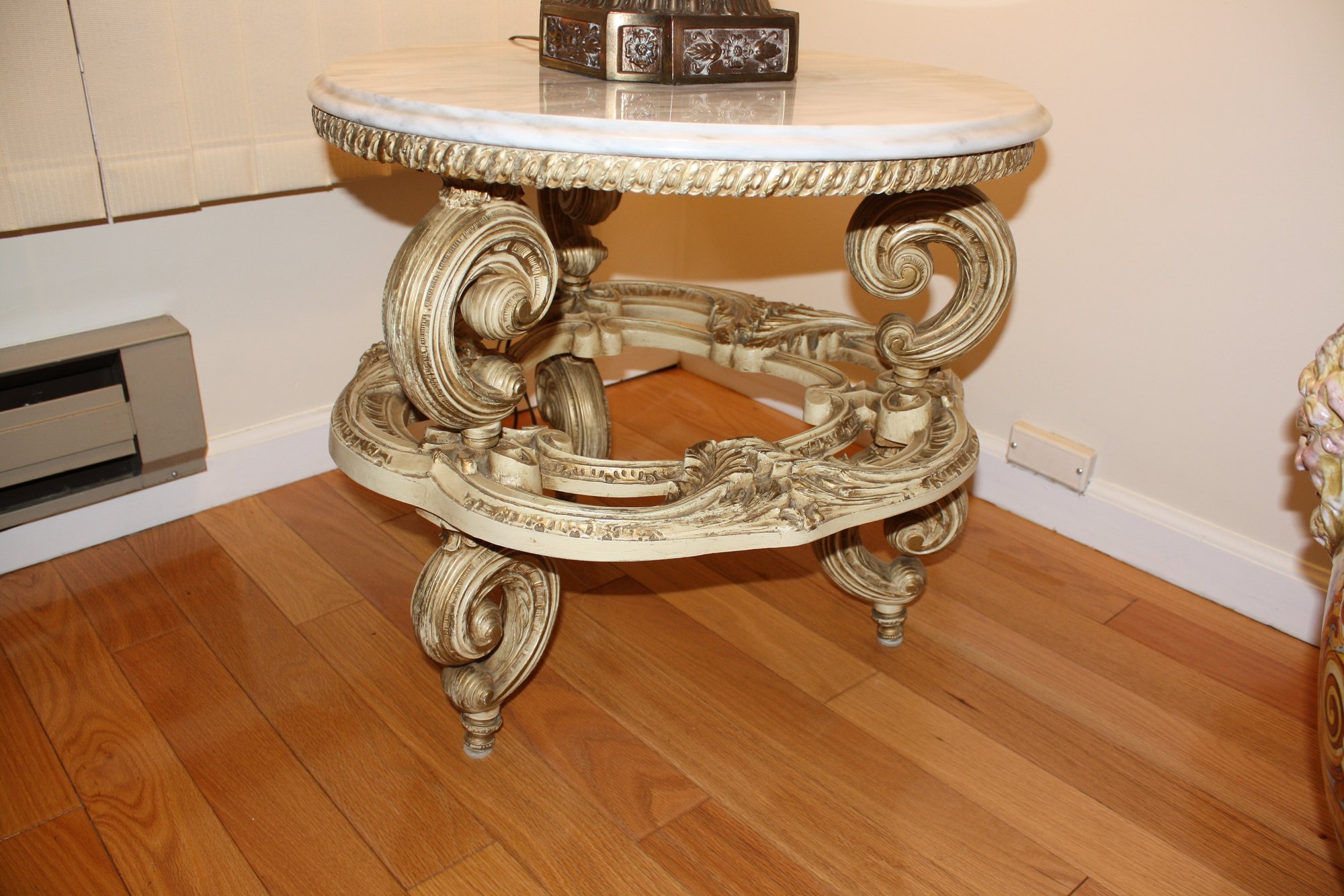 Carrara Marble Top Neoclassical Style Carved Accent Table #1 aprox 25" in diameter and 21" high,