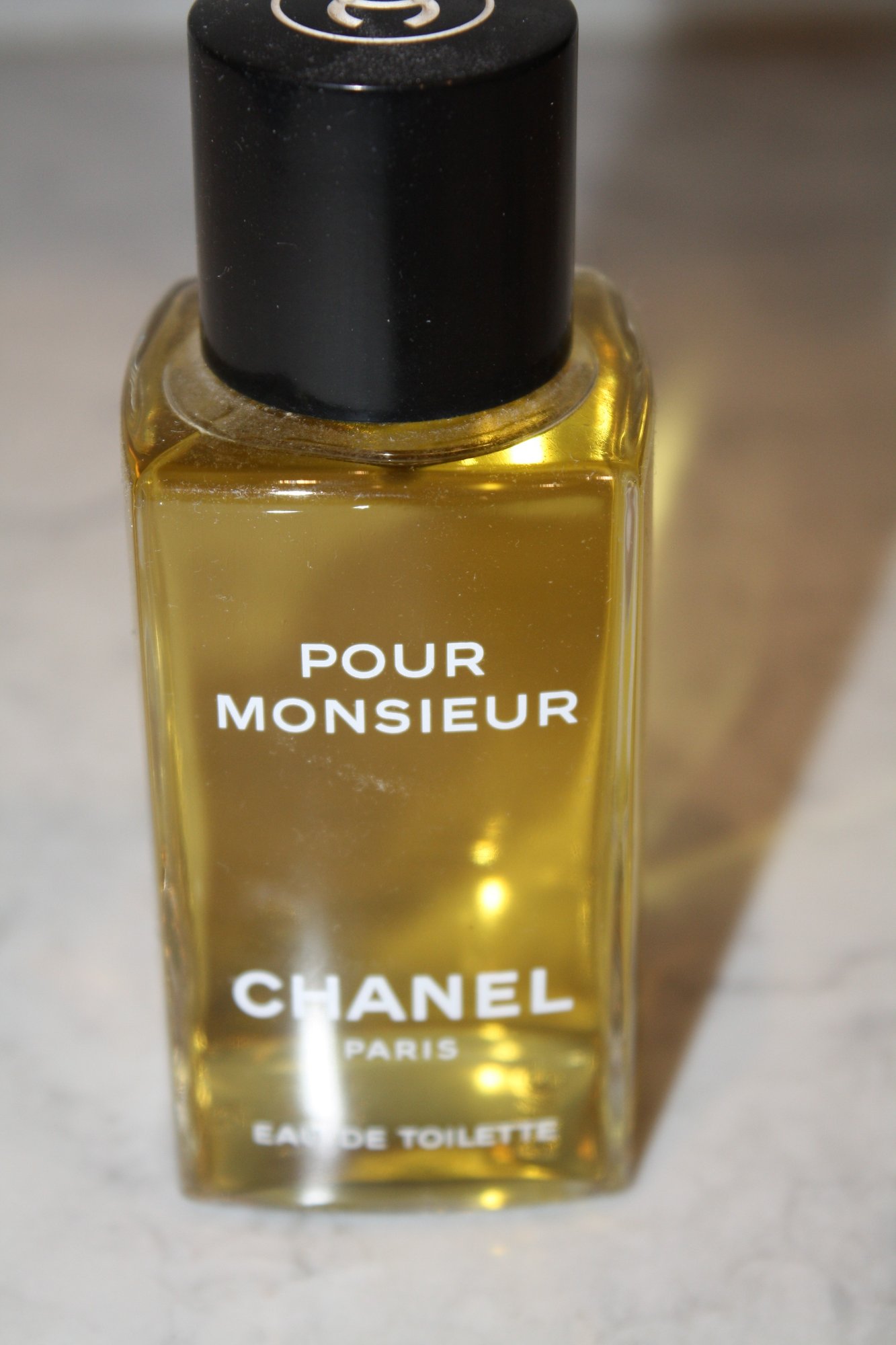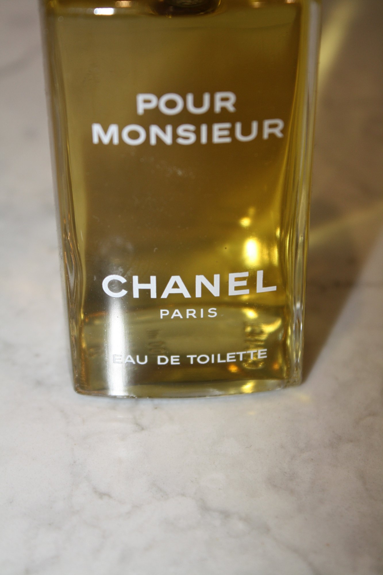 A 100 ml Eau de Toilette presented in a clear glass splash bottle with a classic rectangular form, featuring engraved branding and volume details on the base. The design reflects a traditional fragrance presentation with clean lines and a minimalist aesthetic, characteristic of vintage vanity bottles.