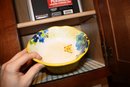 pier 1 Yellow Wavy Swirl Bowls With Butterfly And Floral Motif