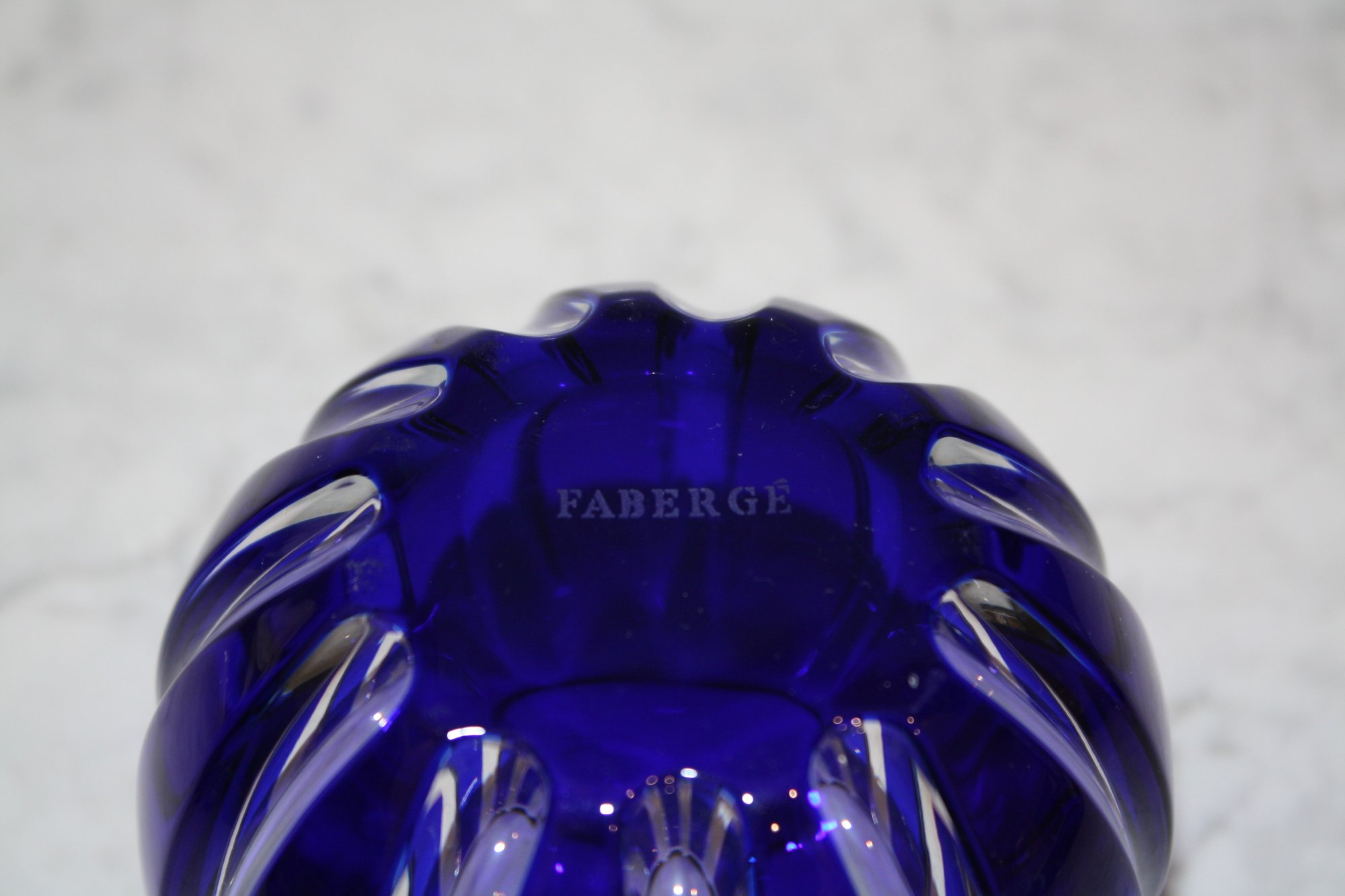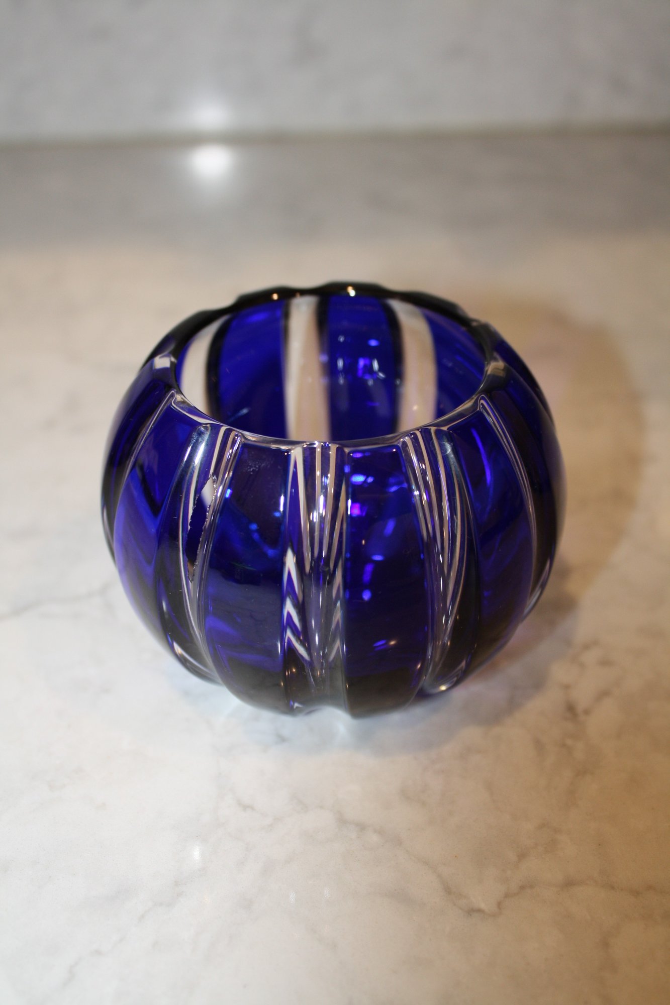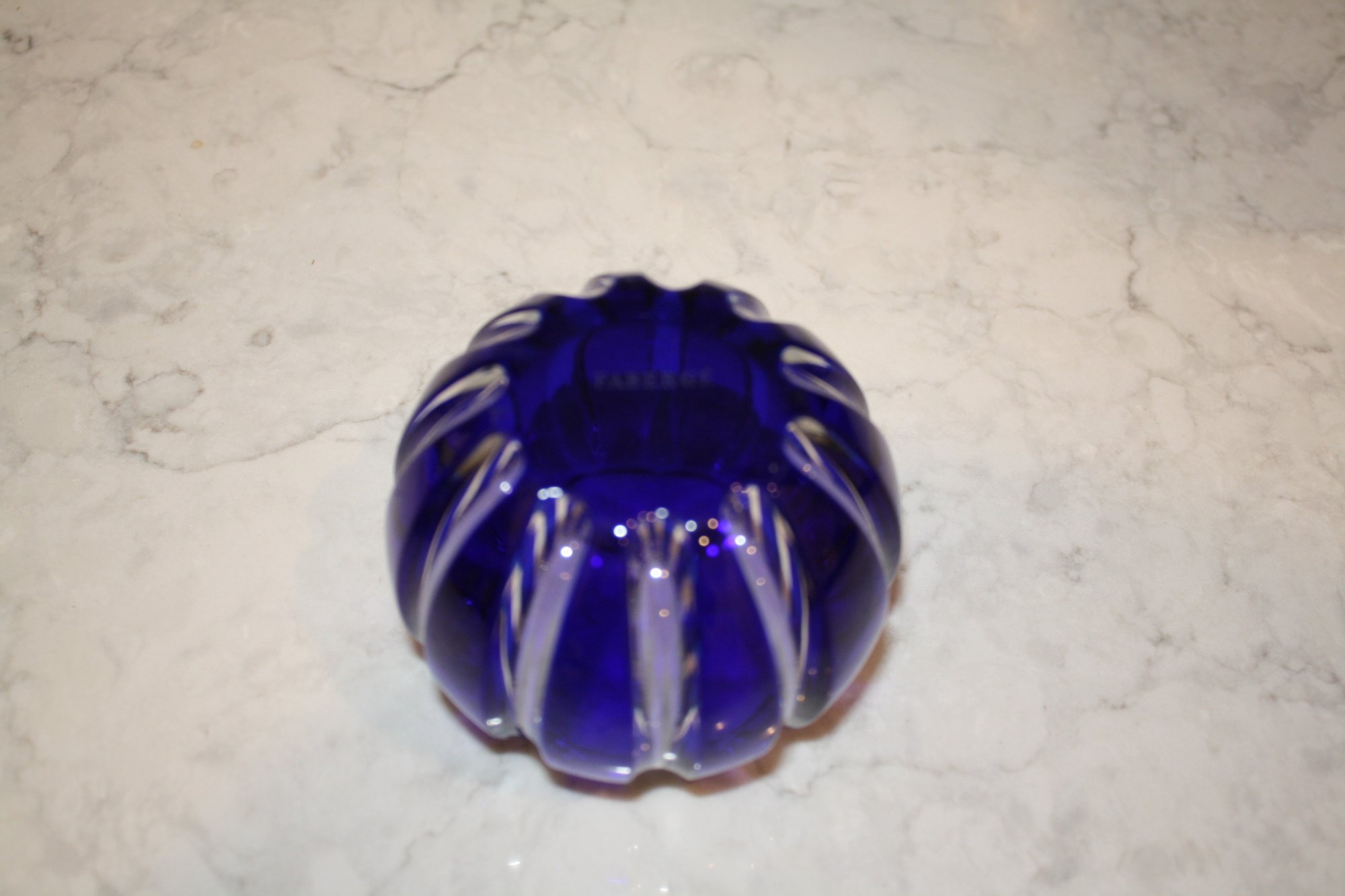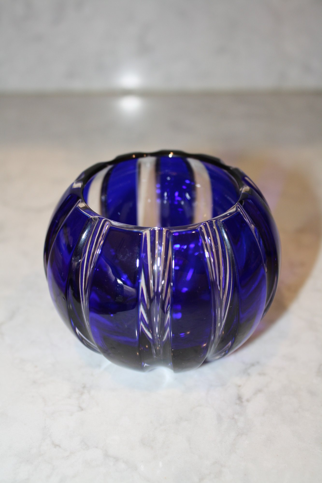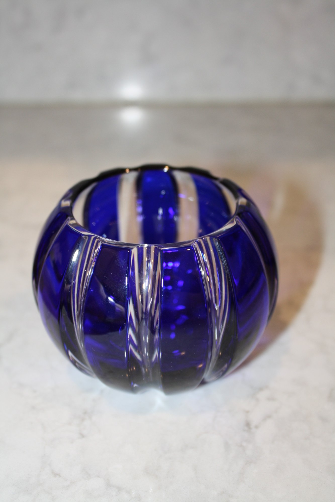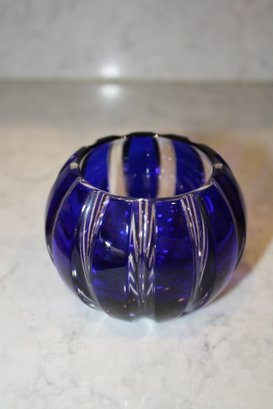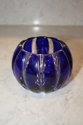Faberge Parallele Cobalt Cut-to-Clear Crystal Votive Candle Holder Has Hole