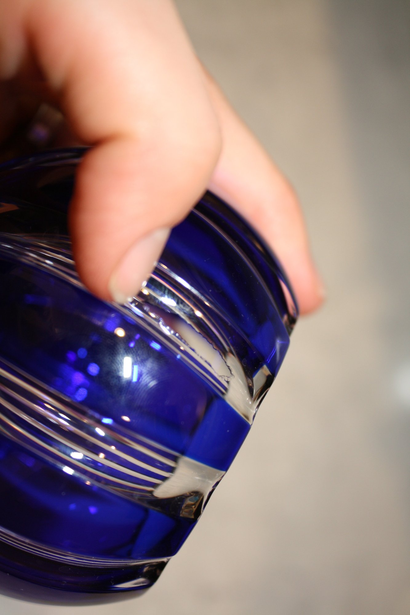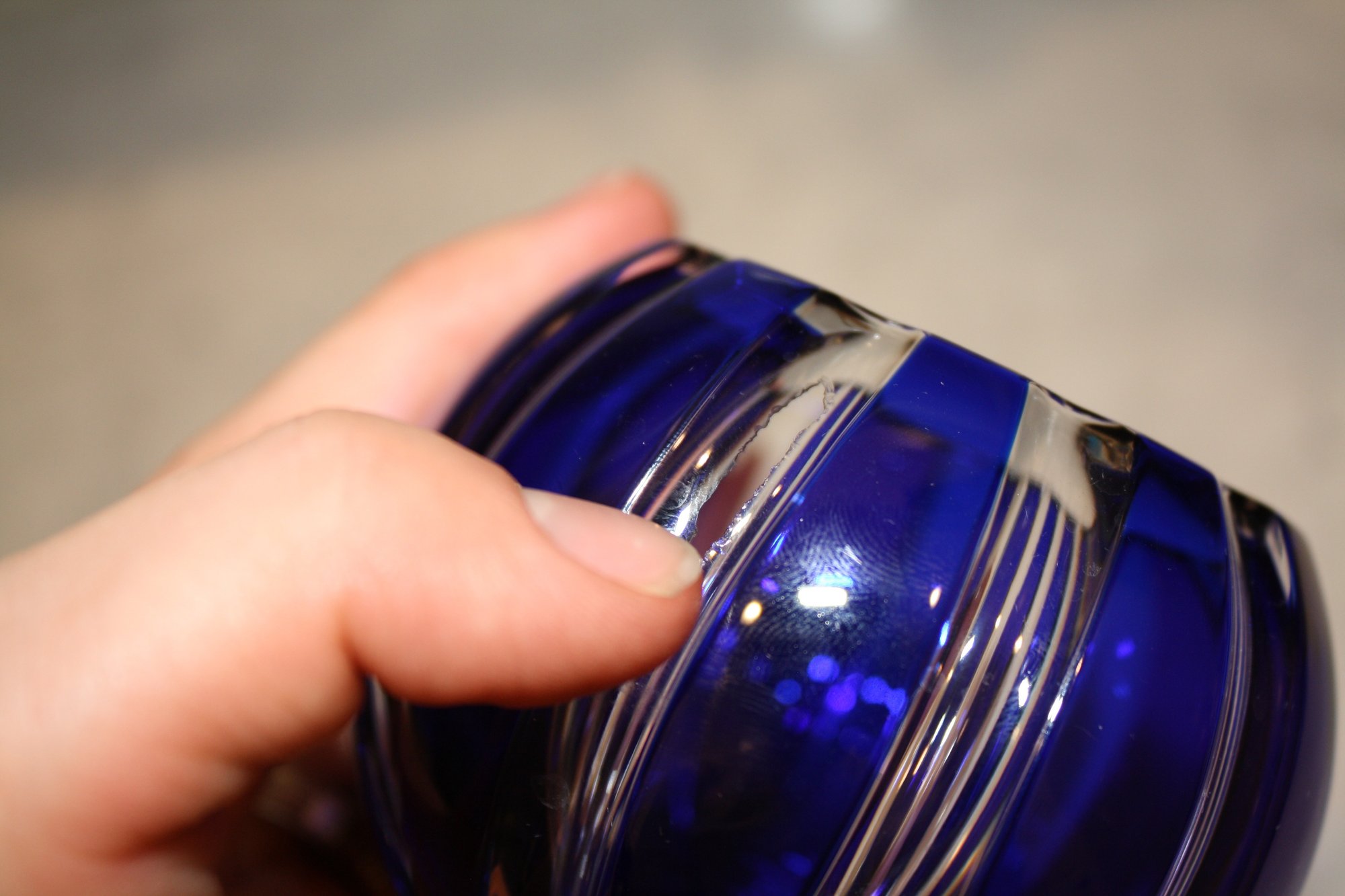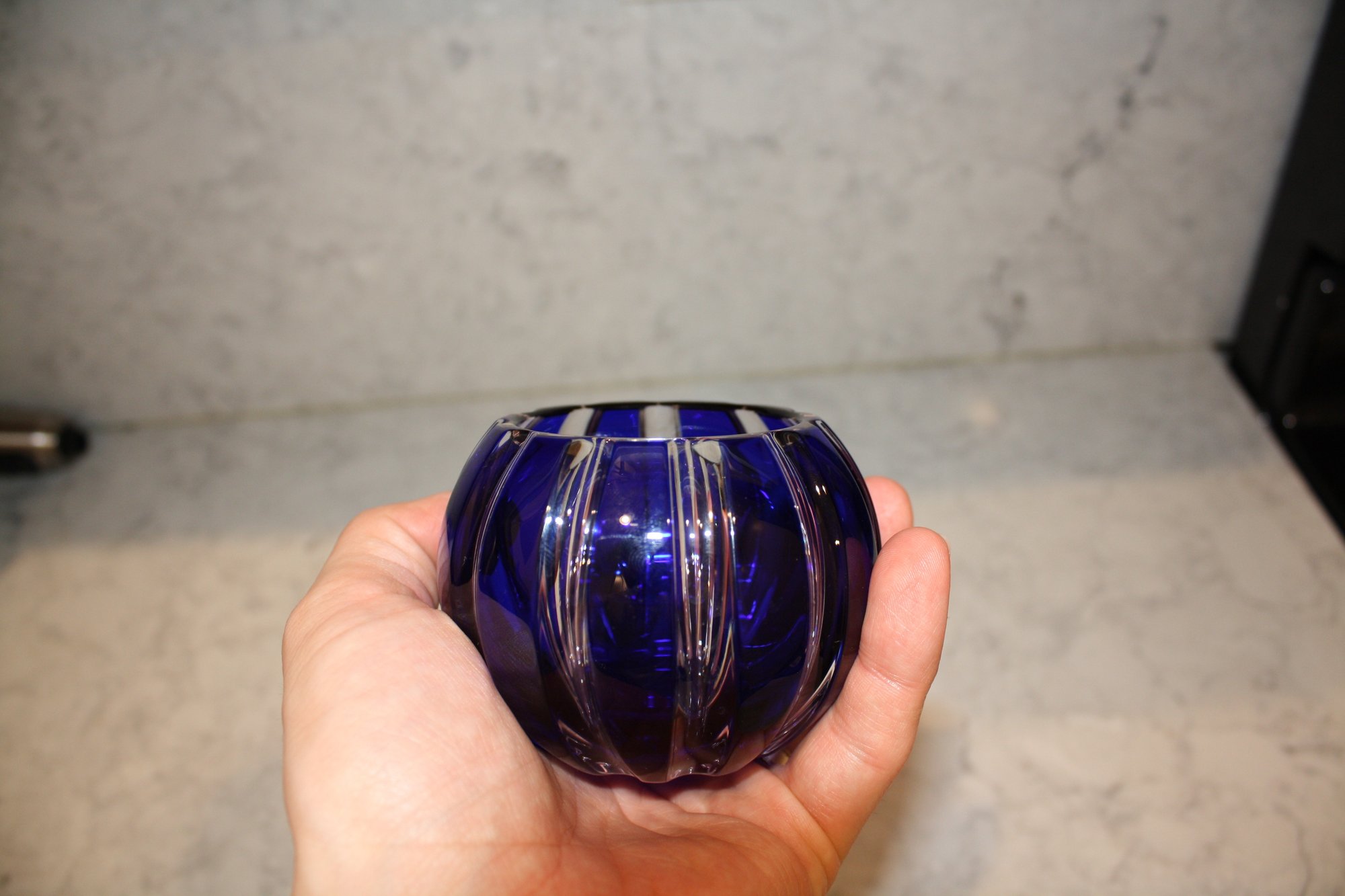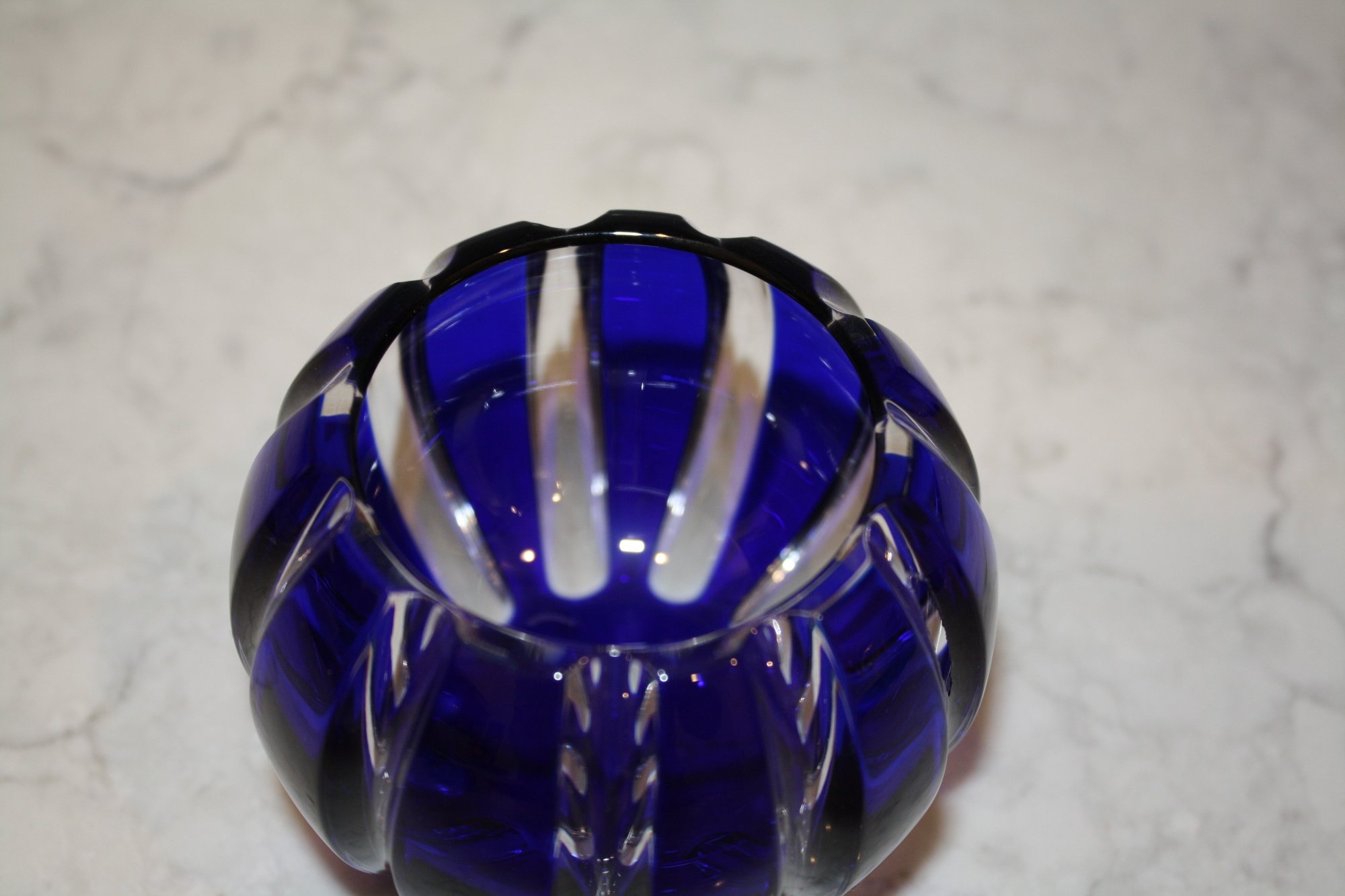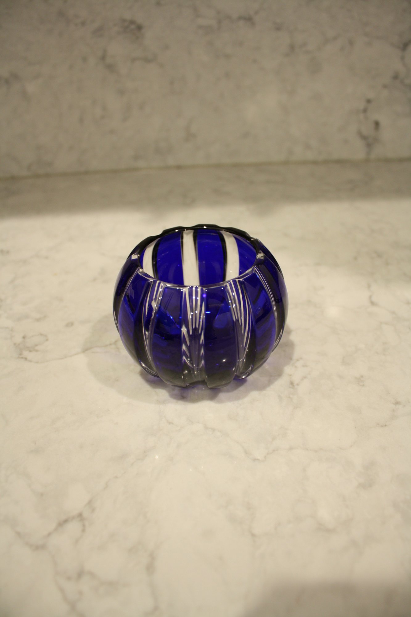 Faberge Parallele Cobalt Cut-to-Clear Crystal Votive Candle Holder Has Hole