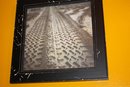 Framed picture depicting tire tracks, capturing a minimalist or industrial-inspired aesthetic. Suitable for display in living rooms, offices, garages, or as part of a modern or automotive-themed decor collection.