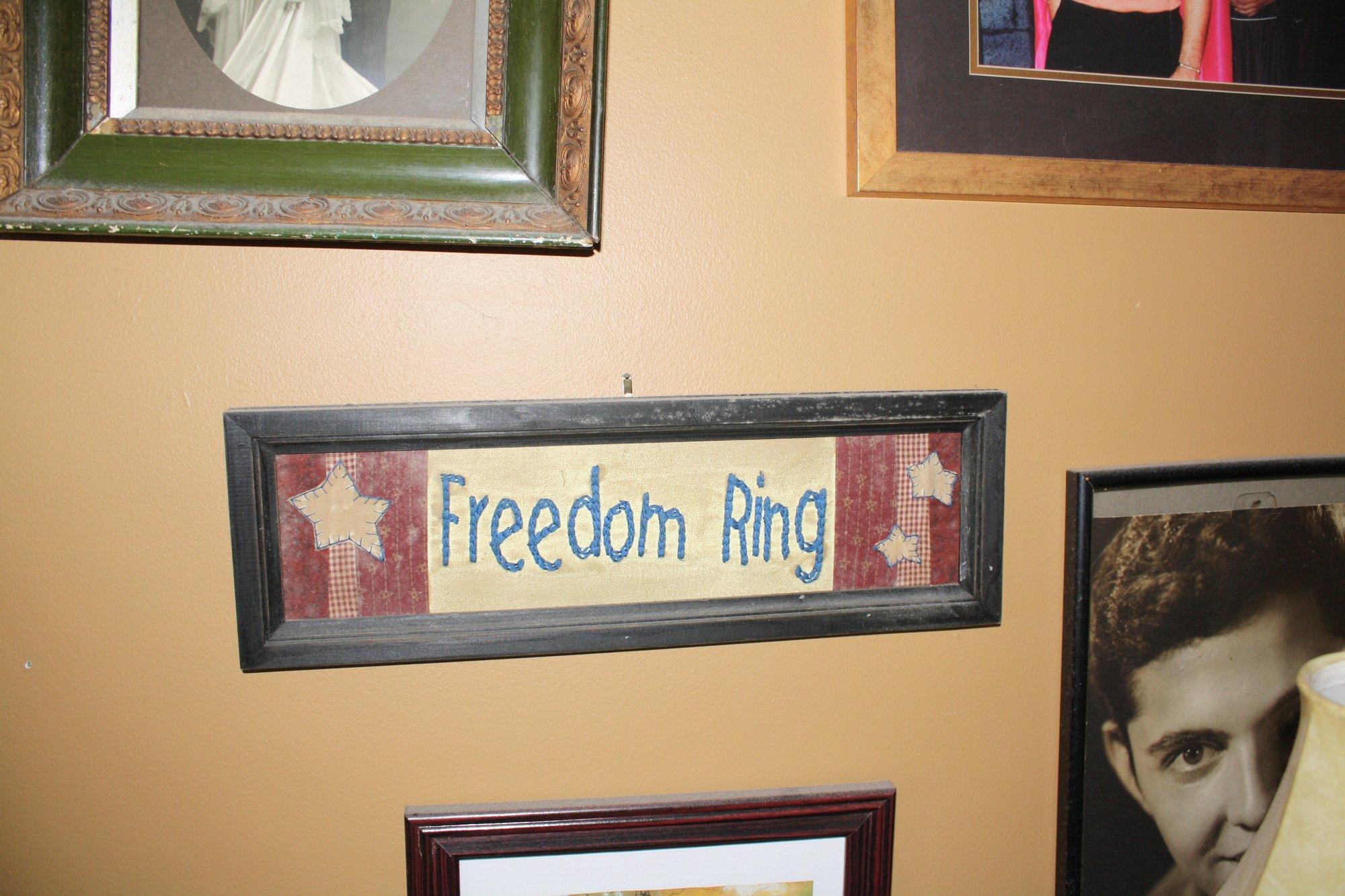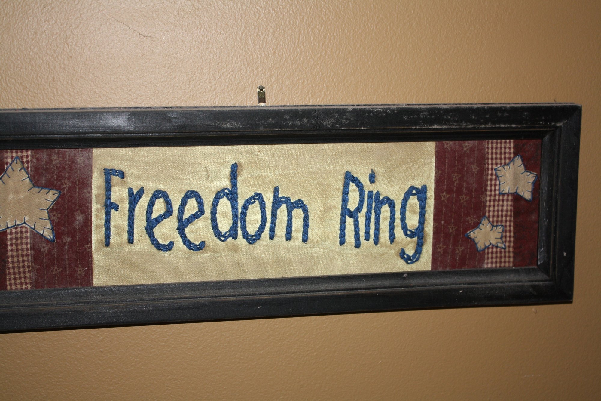 Framed "Freedom Ring" Textile Art With Stars And Plaid