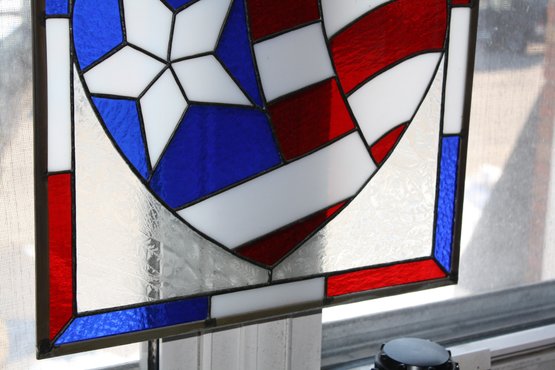 Handcrafted Patriotic Heart Stained Glass window heart 18 inches wide
