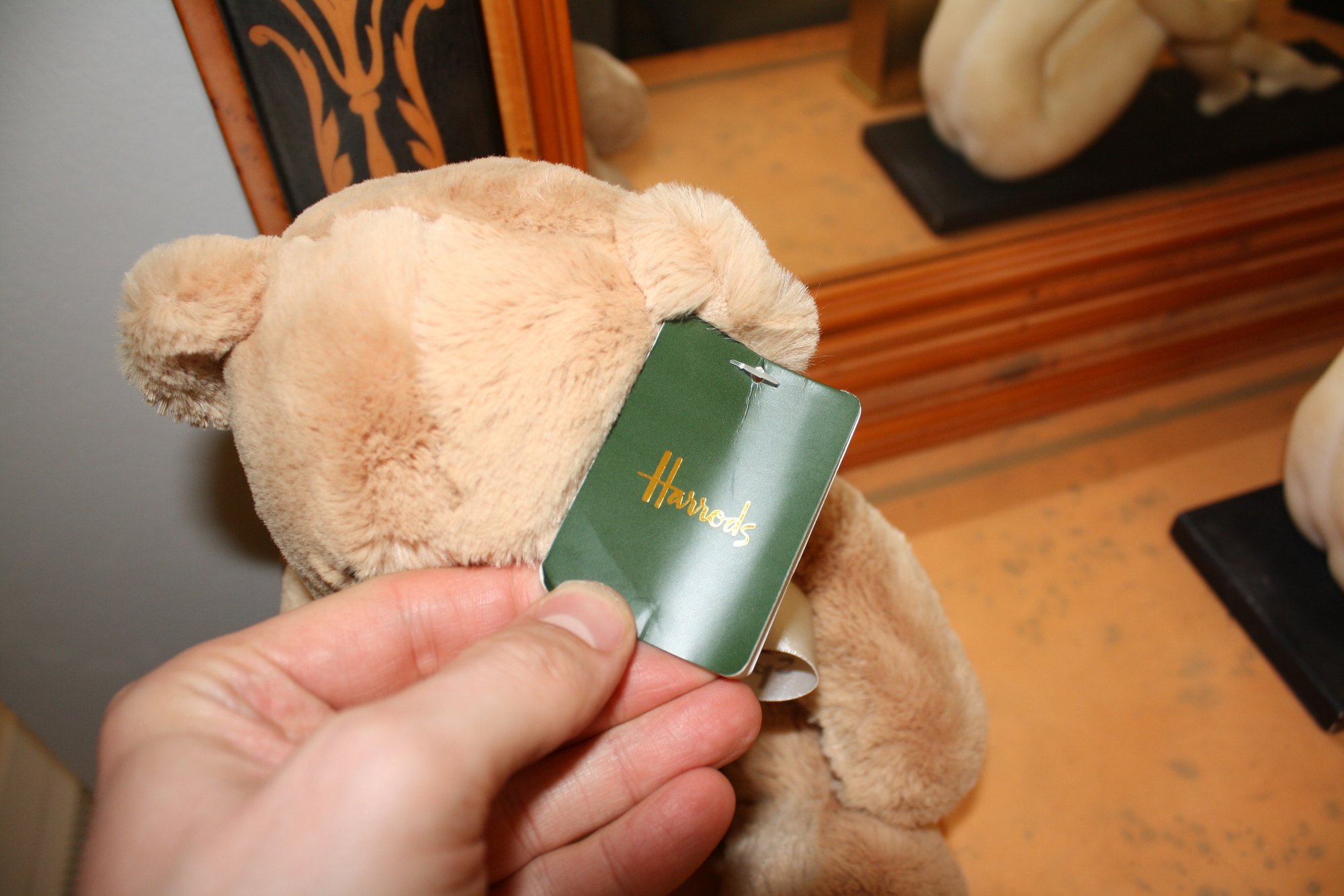 Harrods collectible teddy bear plush manufactured by the luxury department store Harrods in London, England, featuring soft plush construction, often produced as part of the annual limited-edition Christmas bear series since 1986, designed as a decorative and collectible plush companion sometimes dressed in themed outfits or finished with satin bow accents