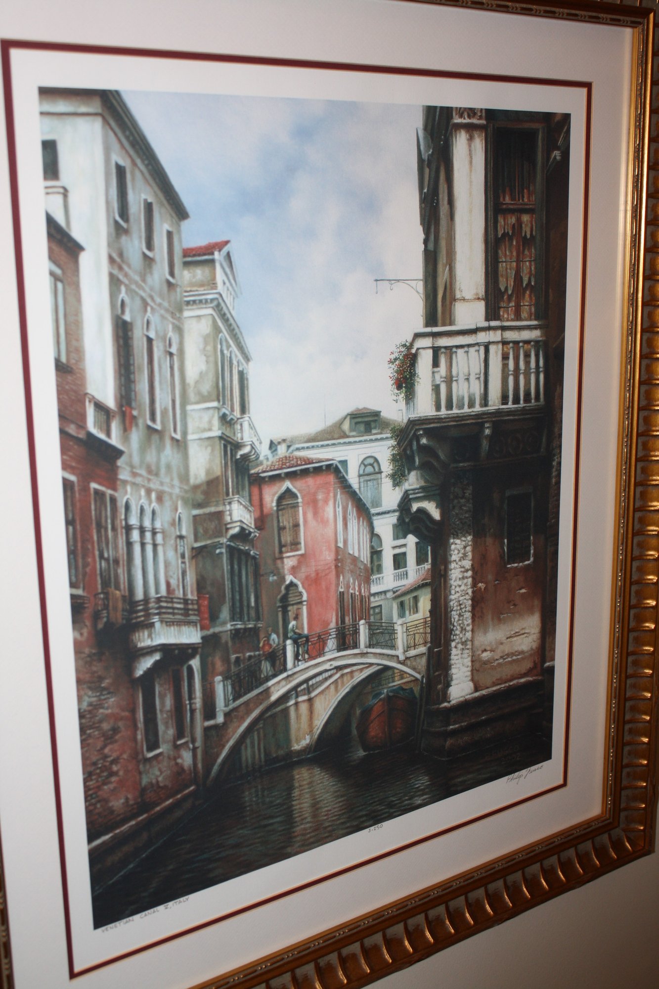 philip fusco 2002 venetian canal italy signed and numbered 26"x27"