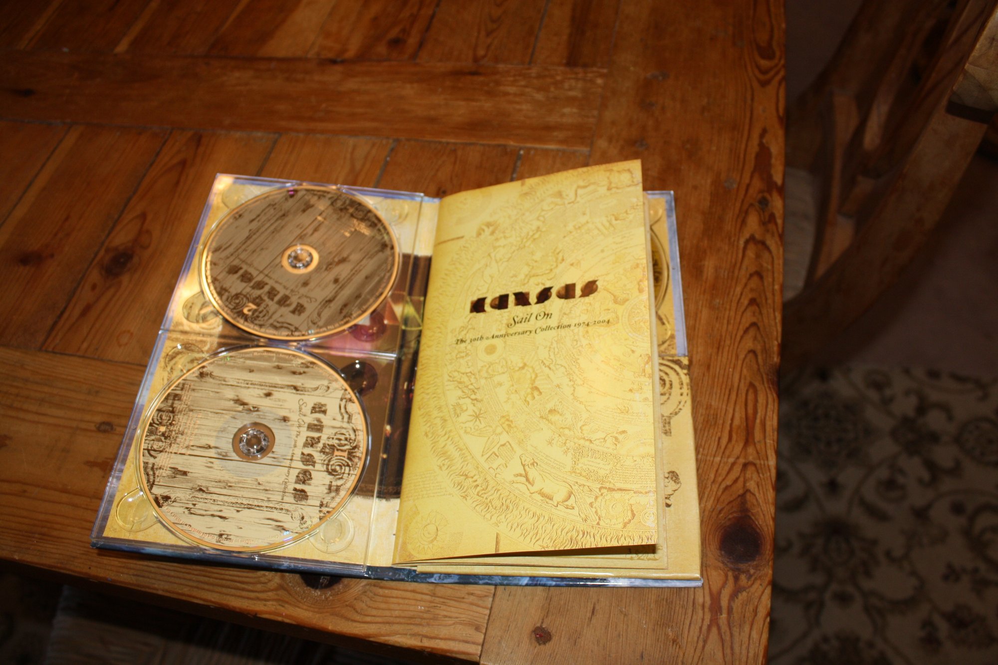 Kansas “Sail On: The 30th Anniversary Collection” box set, released in 2004 to celebrate the band’s 30th anniversary (1974–2004). Includes two CDs featuring classic hits and a DVD with additional performances or content. A collectible music set for fans of Kansas and classic rock enthusiasts.
