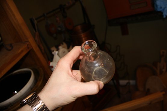 Glass laboratory Florence flask, also known as a round-bottom boiling flask, designed for uniform heating, boiling, and distillation of liquids. Made from durable borosilicate glass for high thermal and chemical resistance. Features a spherical body with a long, narrow neck, ideal for chemistry experiments, laboratory use, or educational demonstrations.