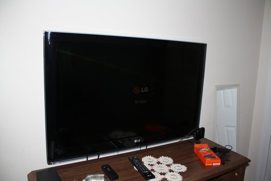 LG 43-inch LED flat-screen television featuring multiple HDMI inputs. Comes with a remote control. Currently displaying a “No Signal” message, ideal for home entertainment setups, living rooms, or bedrooms.