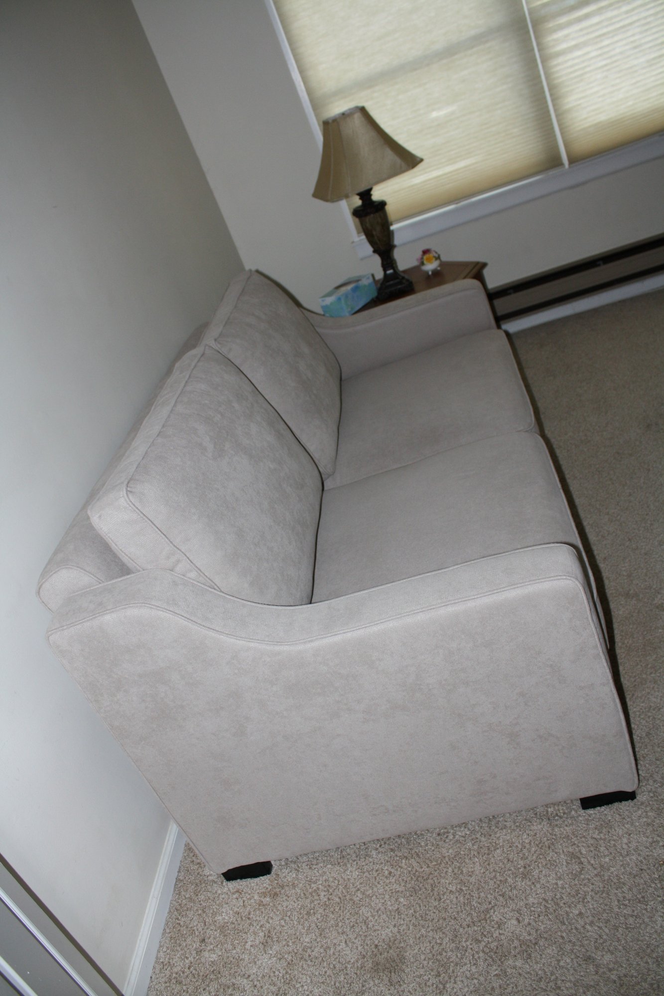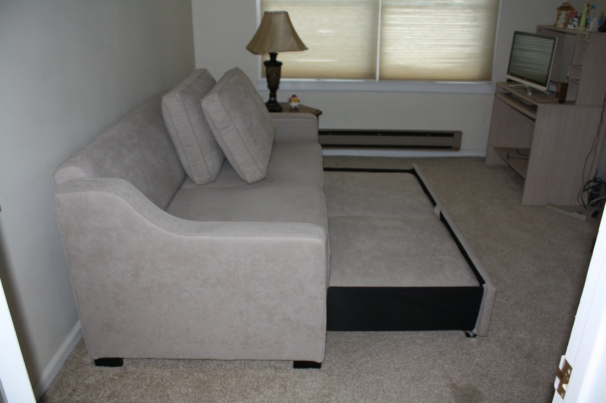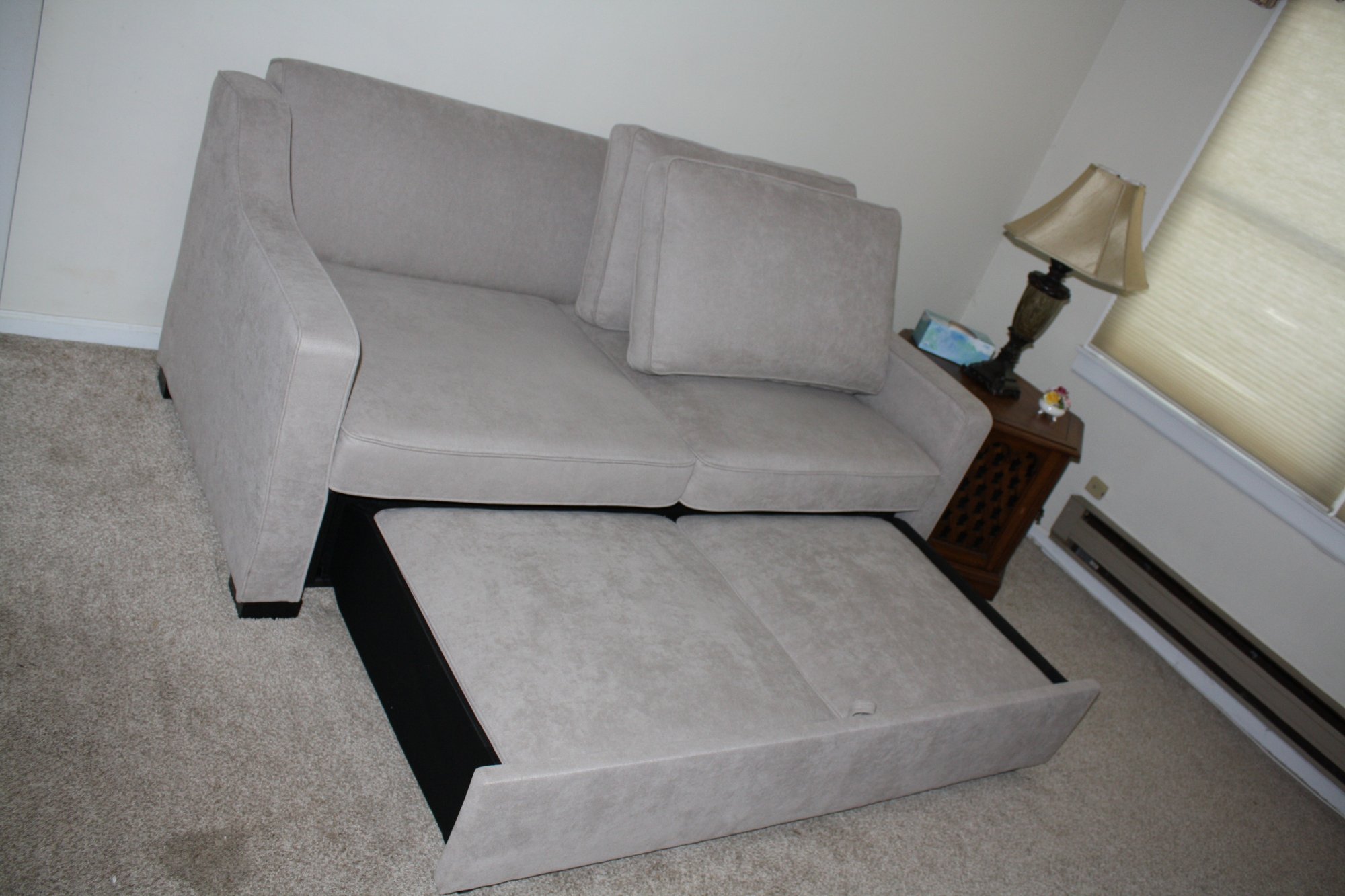 Contemporary gray sofa sleeper measuring approximately 72" wide, 38" deep, and 32" high. Combines seating and sleeping functionality, ideal for living rooms, guest rooms, or small spaces requiring versatile furniture.