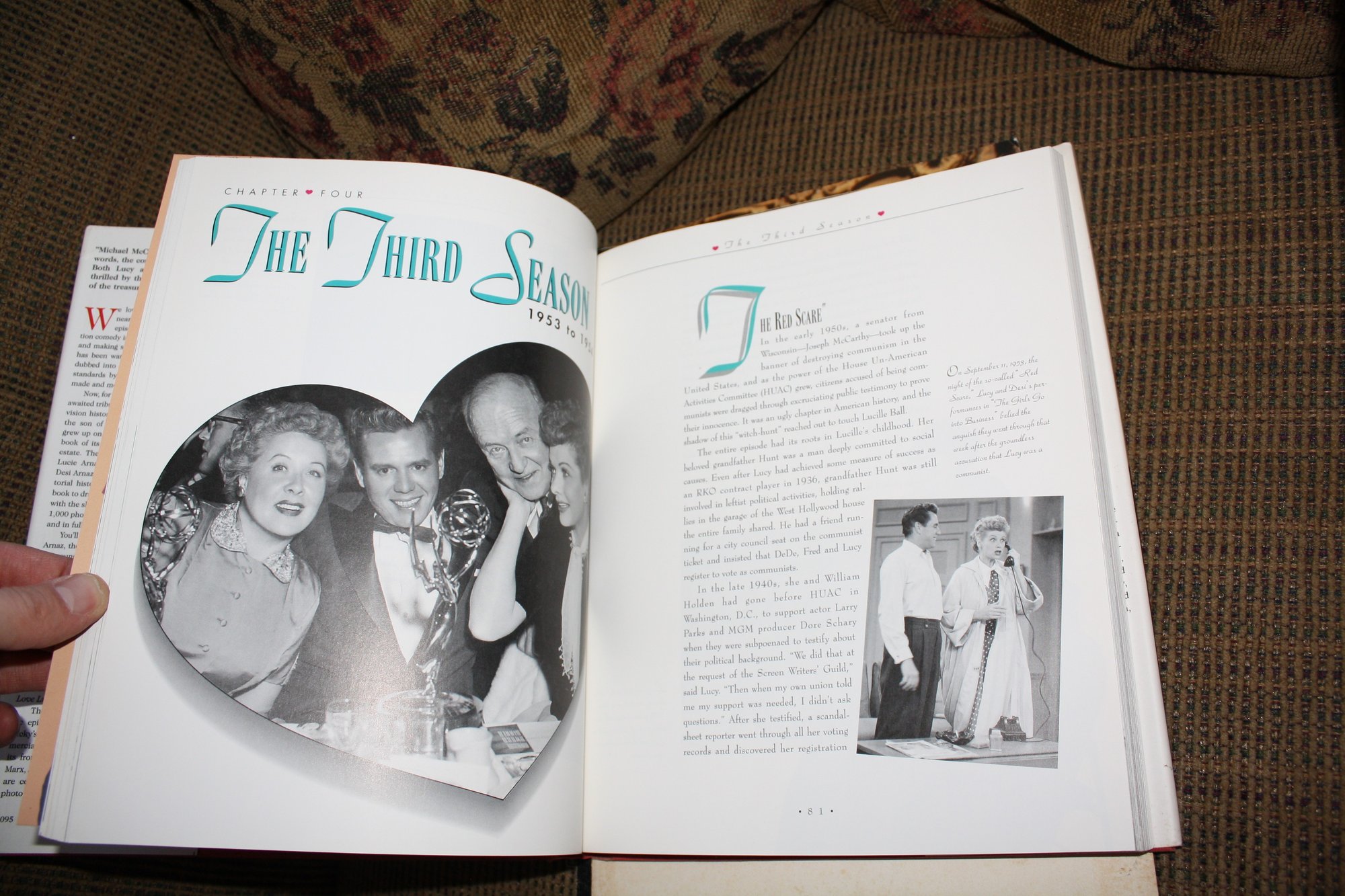 Hardcover book titled I Love Lucy: The Complete Picture History of the Most Popular TV Show Ever by Michael McClay, an authorized publication by the Lucille Ball Estate featuring a detailed pictorial history of the television series with archival photographs, episode information, historical commentary, interviews with cast and creators, and an introduction by Lucie Arnaz, with interior sections covering various seasons of the program including production history and cultural context.