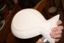 Decorative red fish-shaped platter from the M. Bagwell Water Collection, crafted from ceramic. Ideal for serving seafood, appetizers, or as a whimsical tabletop accent. Adds a vibrant, nautical-inspired touch to kitchen décor or dining displays.