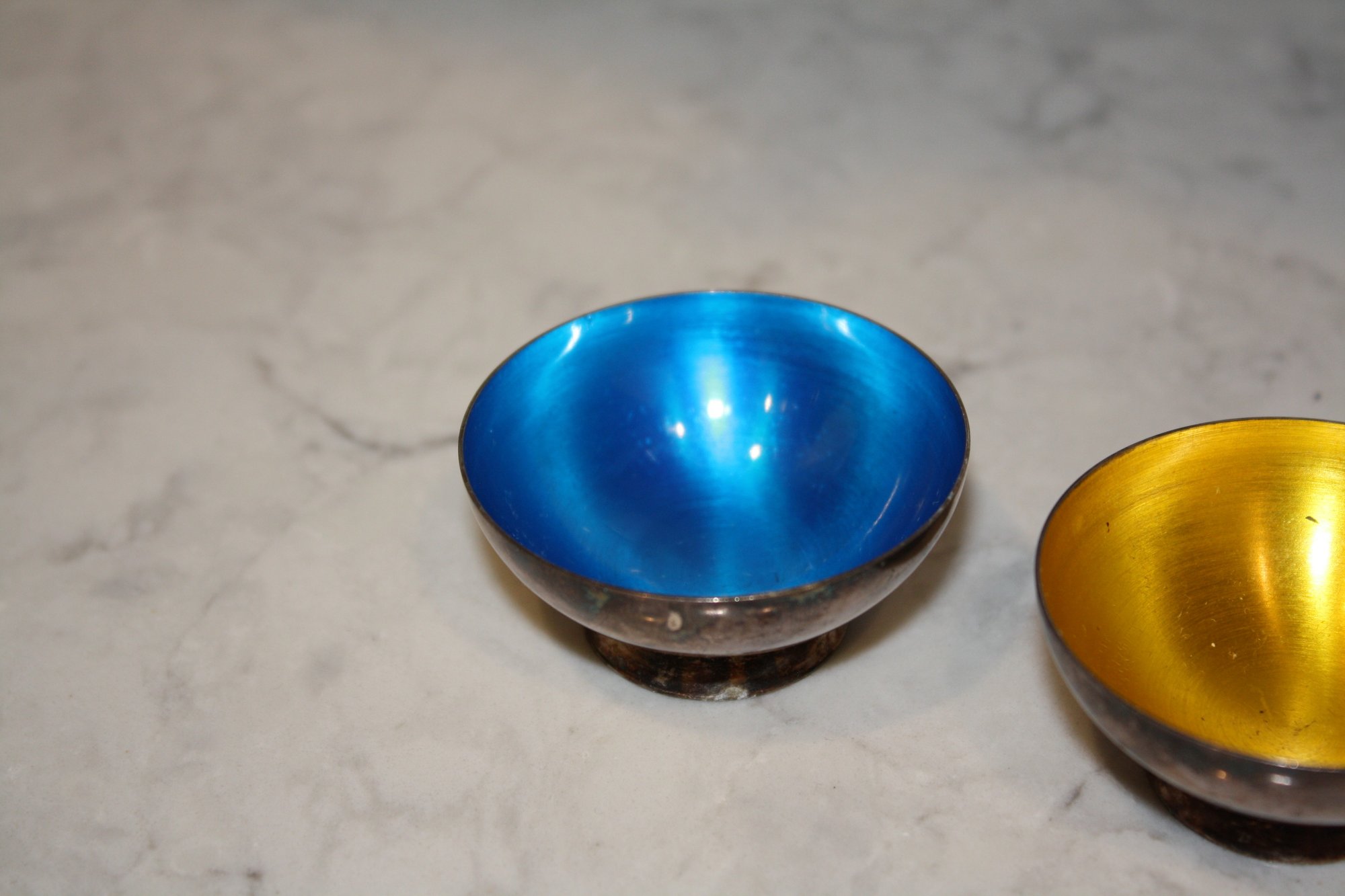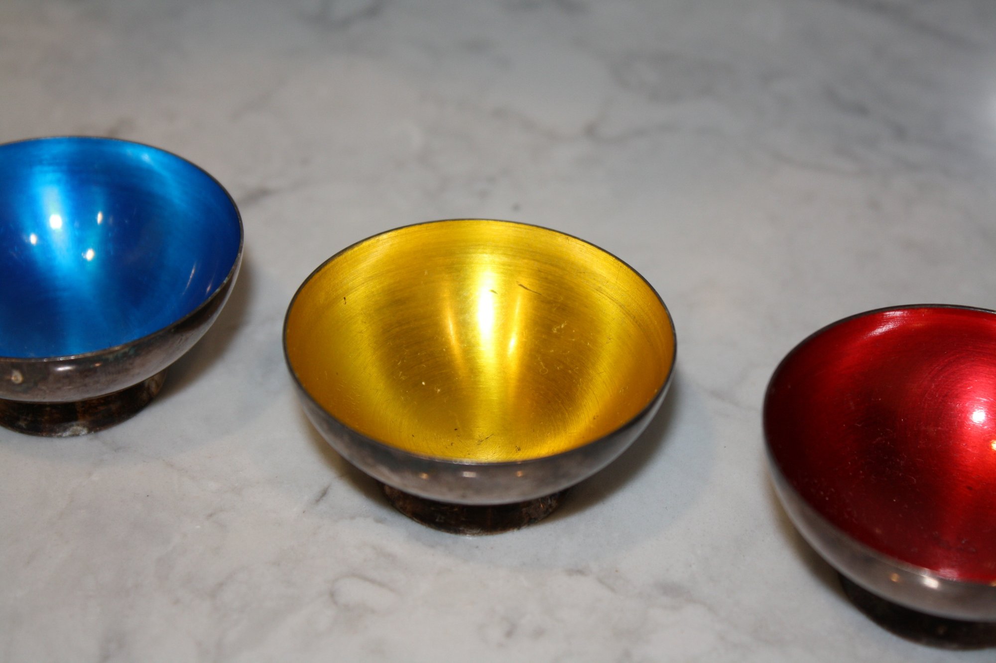 Mid-Century Modern enameled Silver Plated Mini Serving Bowls Set